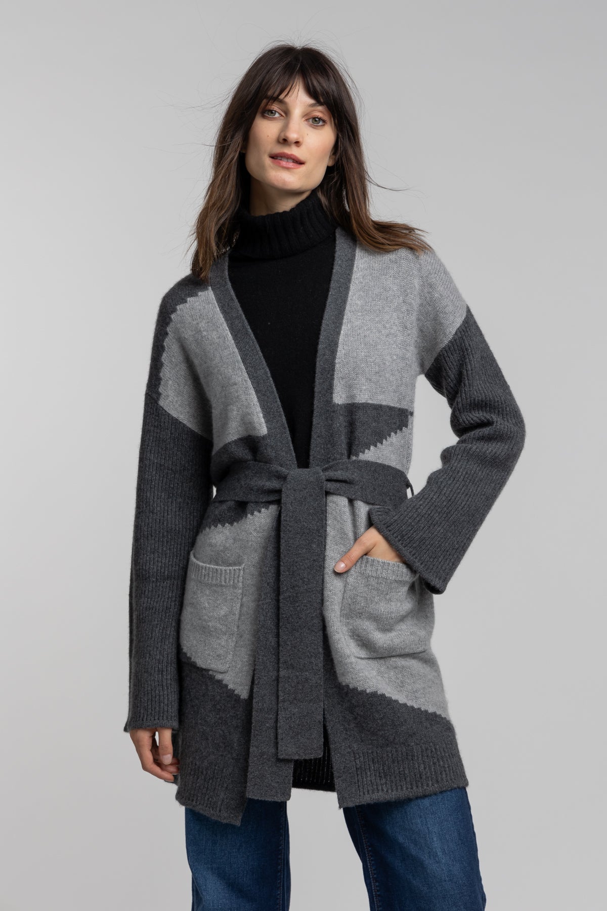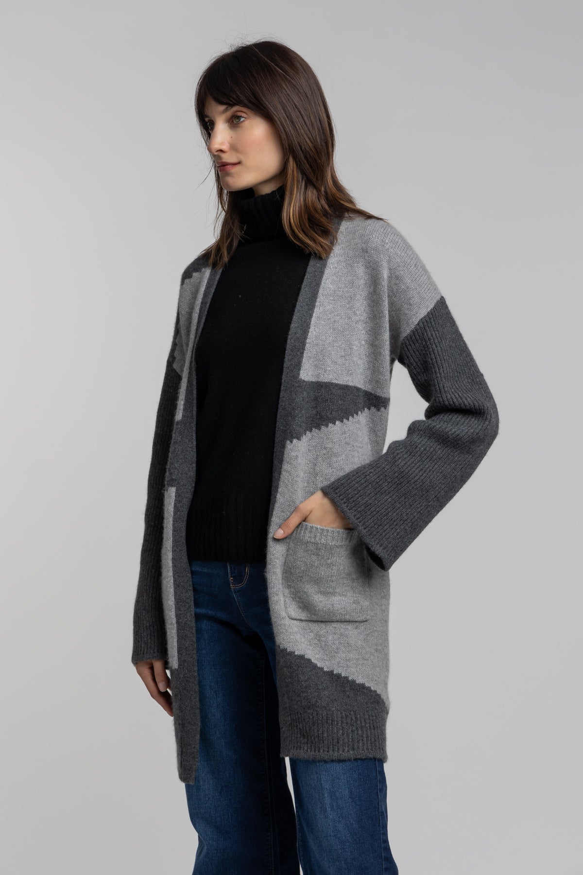 Cashmere Knit Intarsia Coatigan