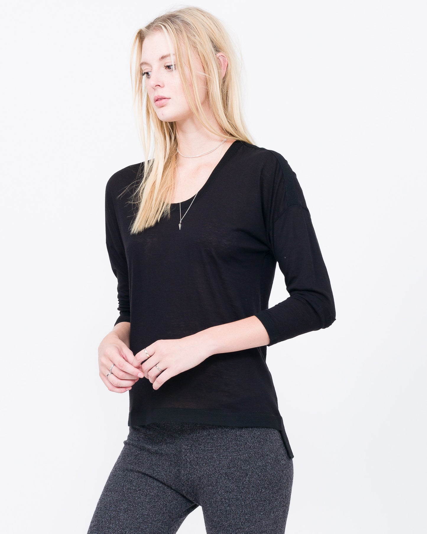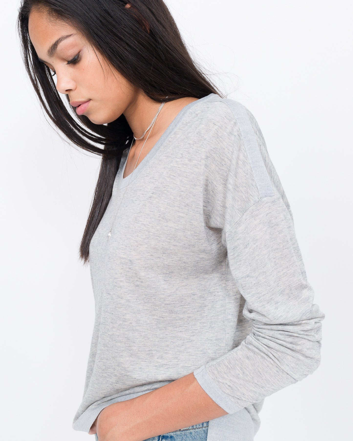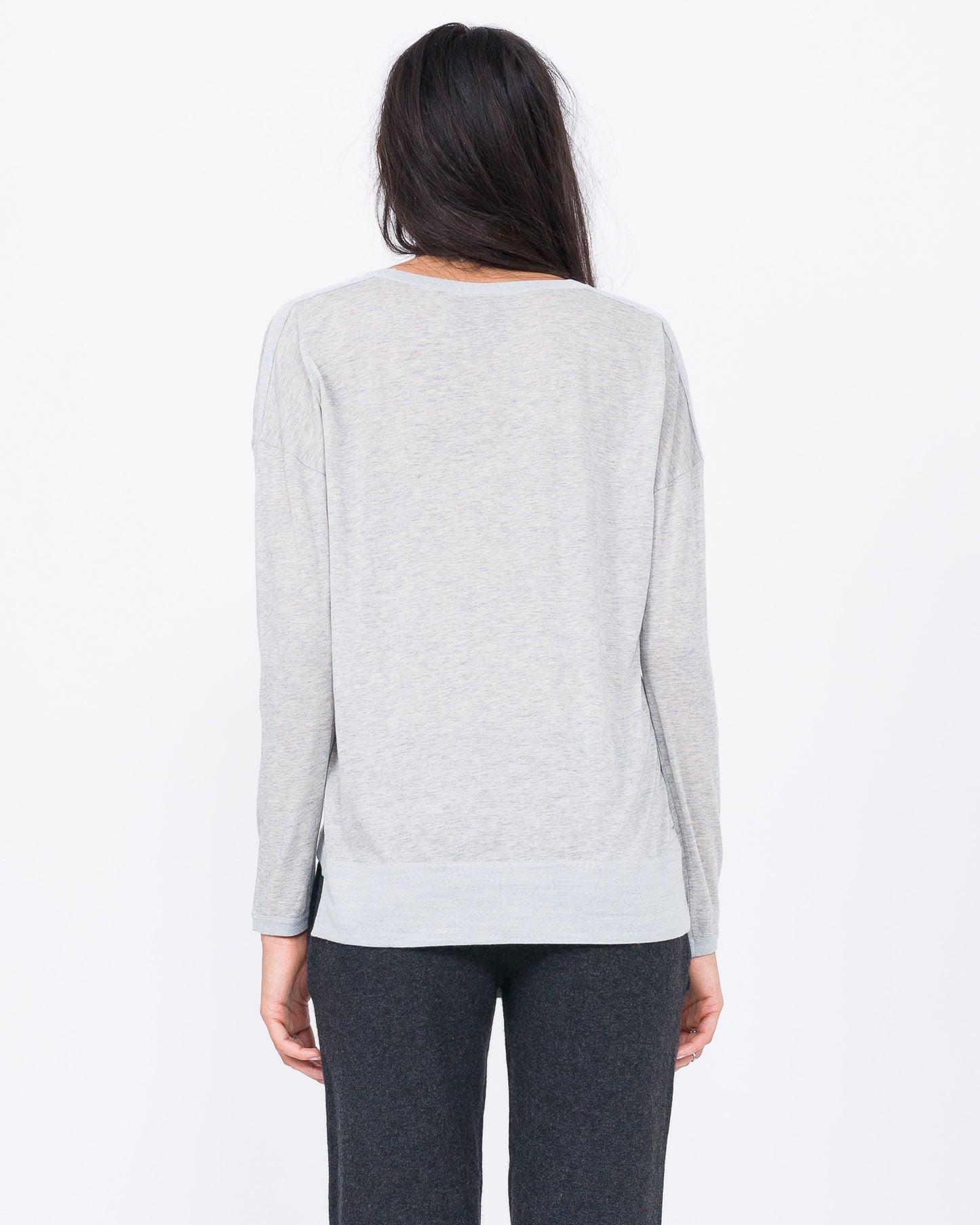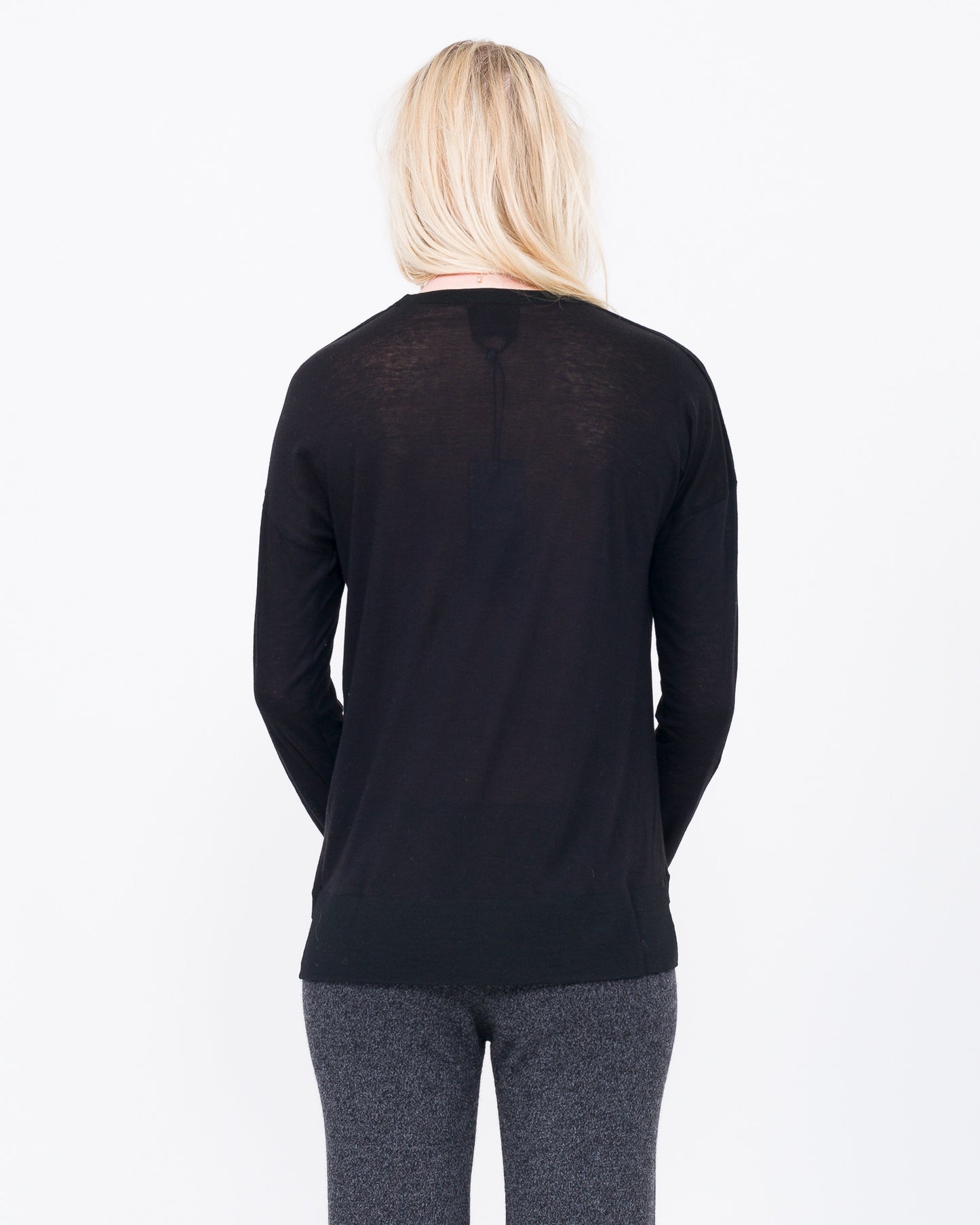 You can never go wrong with an Essential like this. Scoop neck, dropped shoulder and a high-low hem finish makes the Alma an every-single-day-piece. The rib trim details are 100% merino wool, hand linked.. This luxurious knitted fabric is a year round basic!