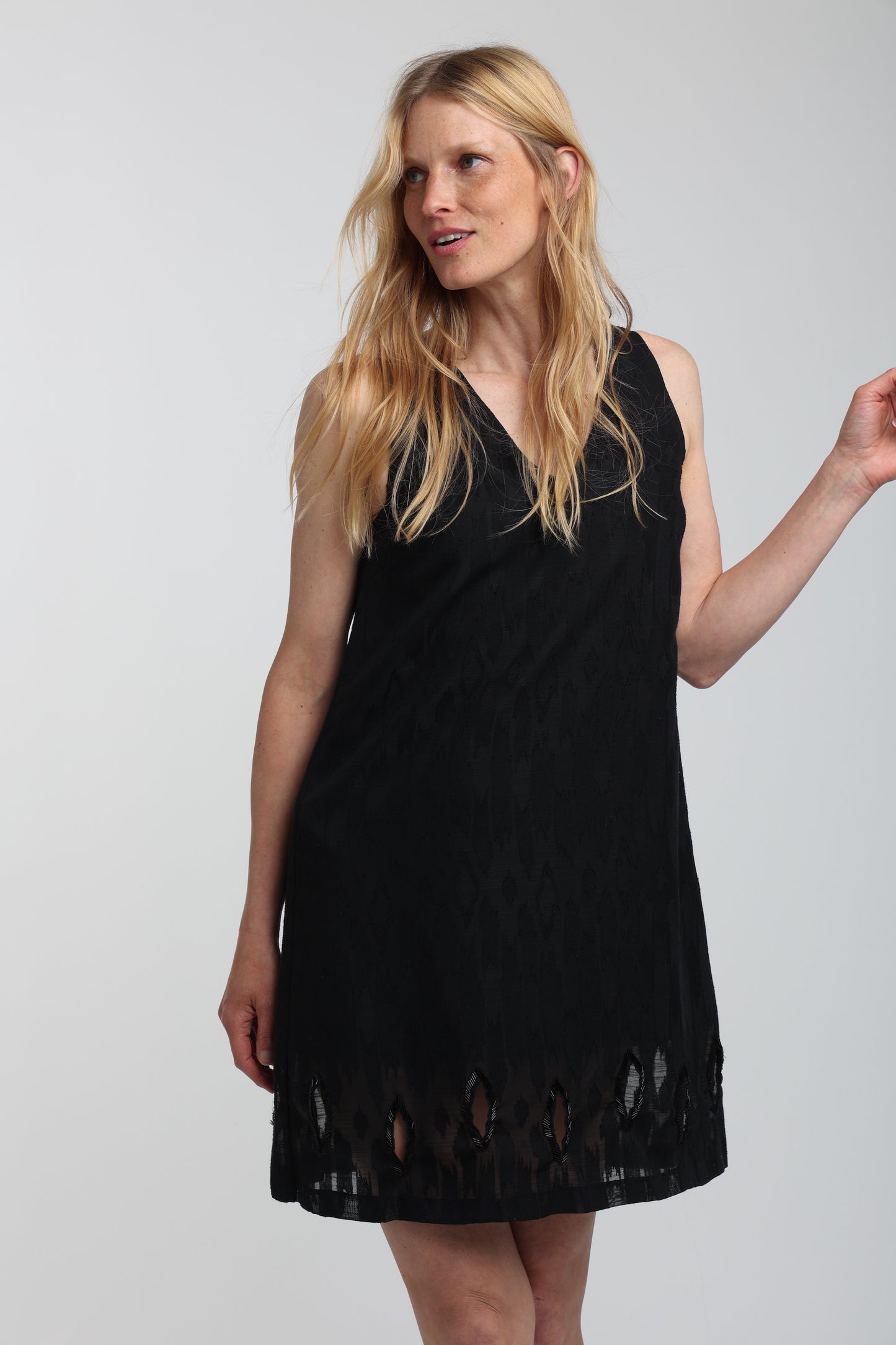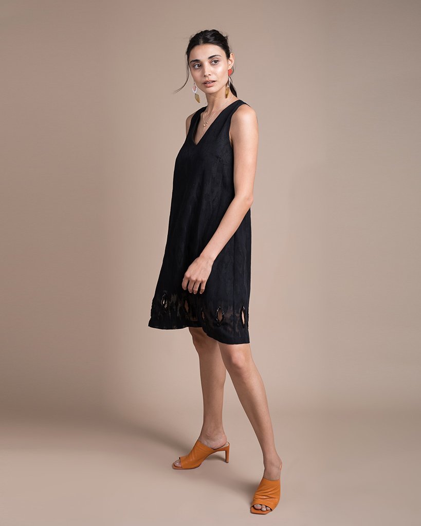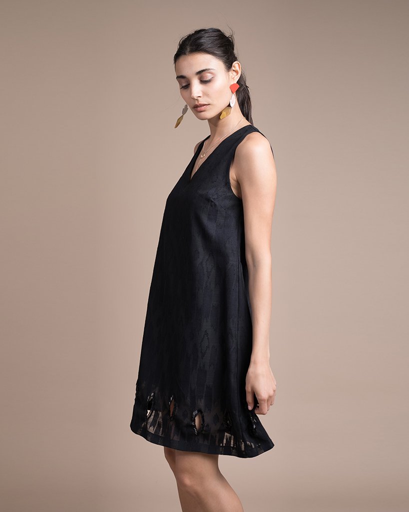 Regular price $314.50The Audrey Cotton Jacquard Mini Dress is the perfect blend of romance and modern design. Its exquisite black beaded cutouts, double-lined fabric, and V-neckline will have you stepping out in style, while the full cotton jacquard and alluring hemline will leave you feeling comfortable and confident. Look no further - this dress is a true luxury.