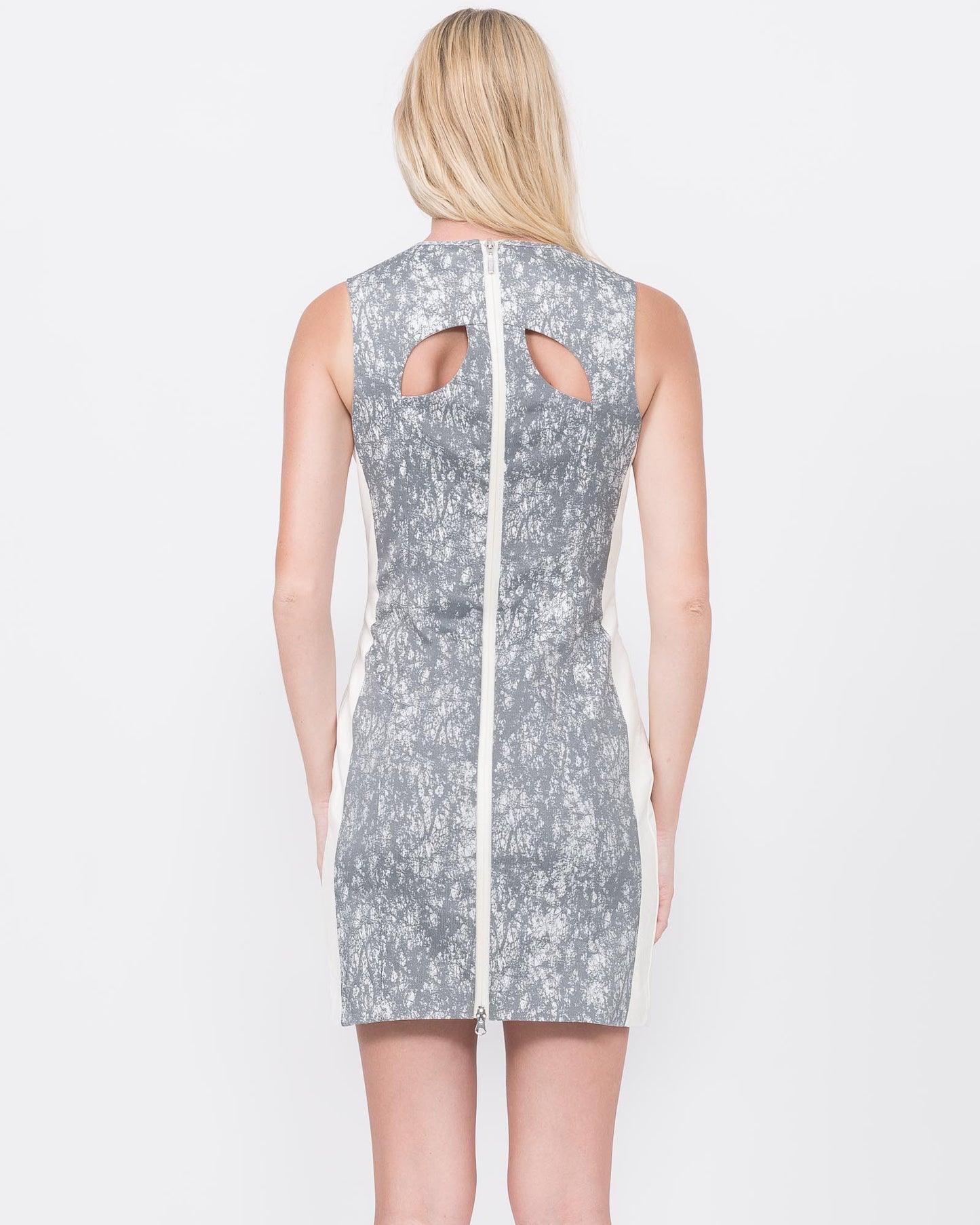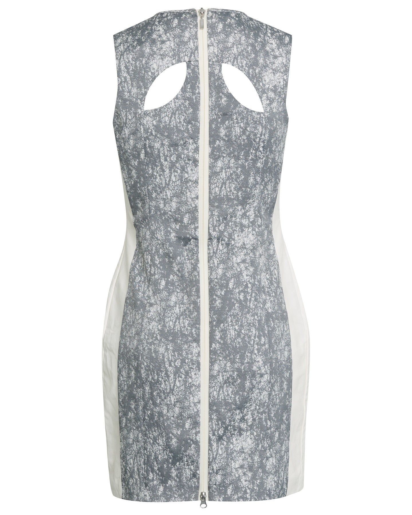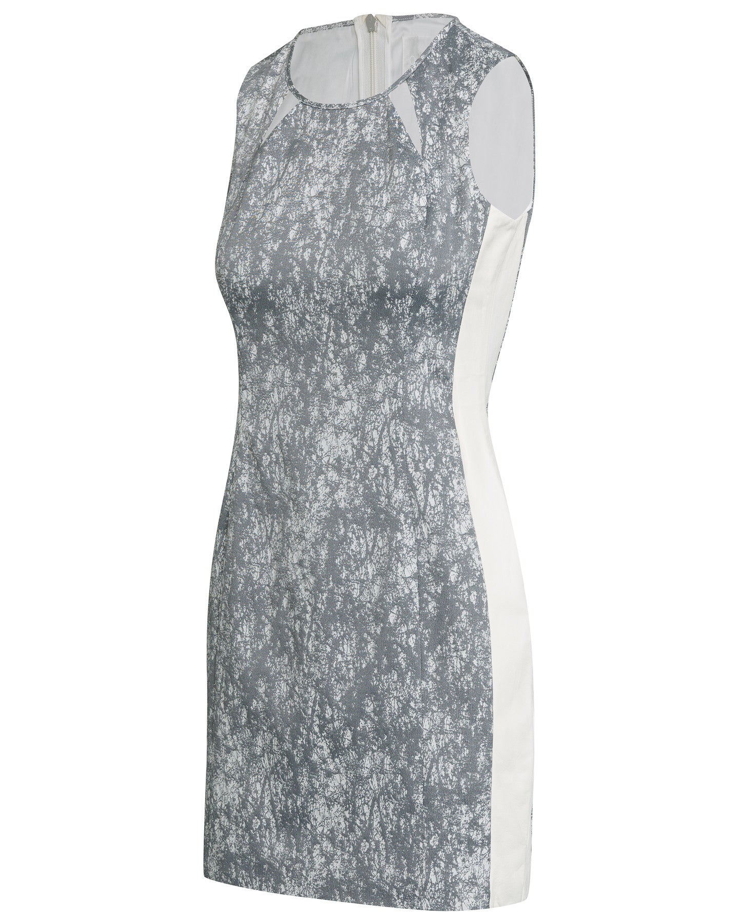 Exclusive jacquard pattern in cotton, spandex. Body conscious panels in white leather enhance the fit!