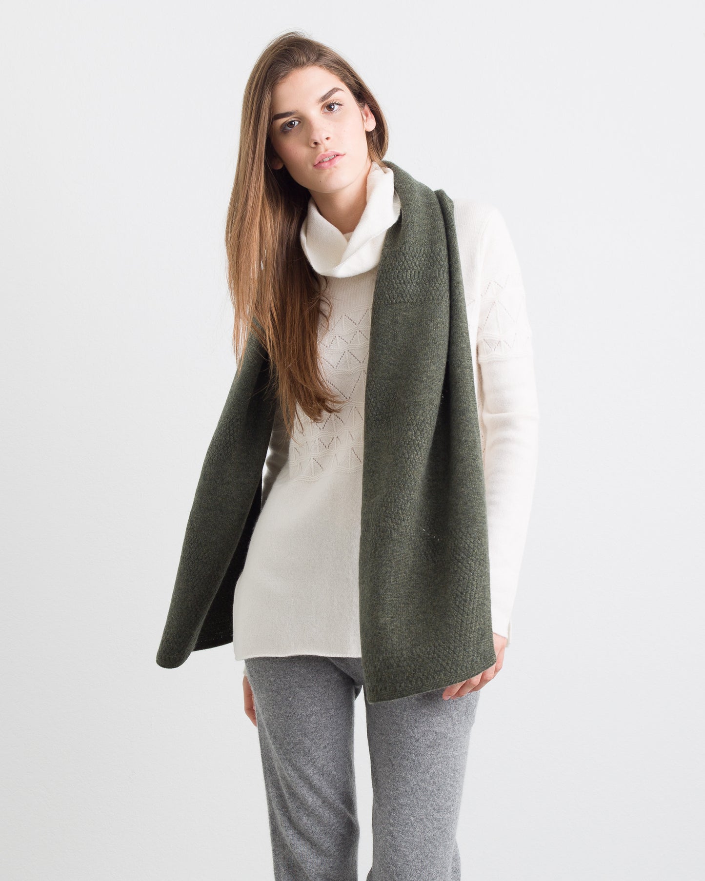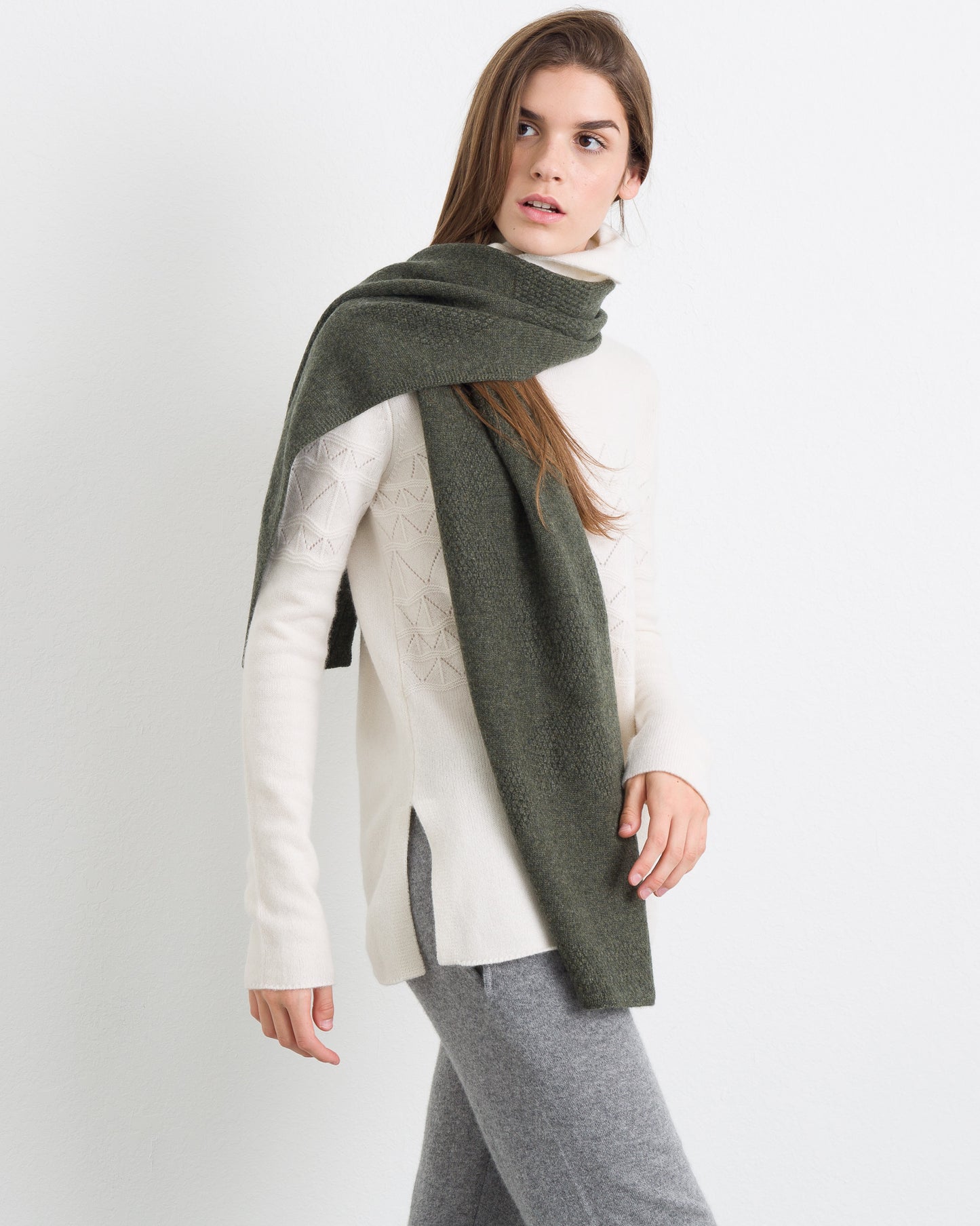 A simple scarf with a twist. This scarf has a geometric dodecahedron stitch detail that is very subtle. Throw it on with jeans and a sweater and you'll be ready to go