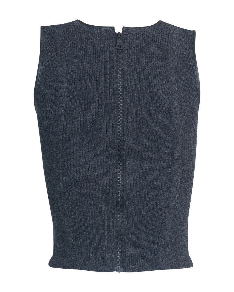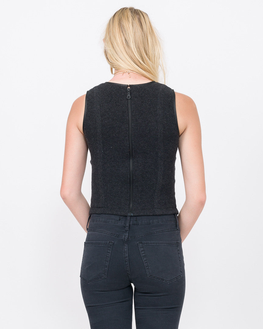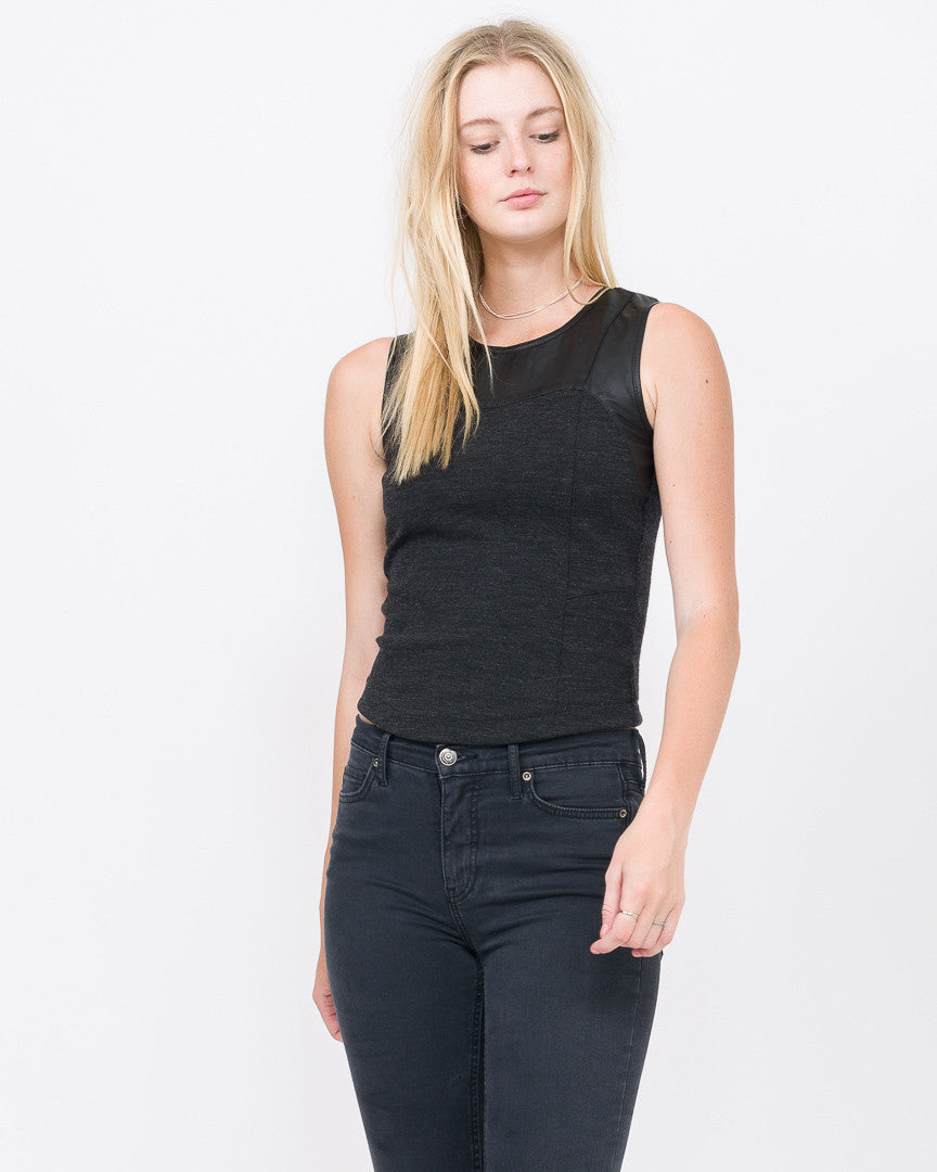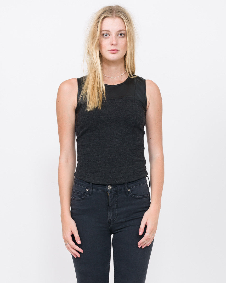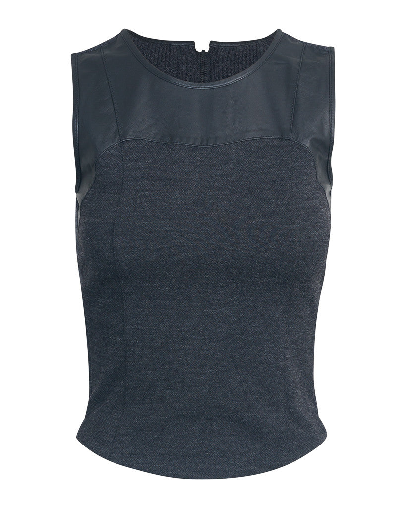Mixed media sleeveless top-- Leather and stretch wool balance this sexy top