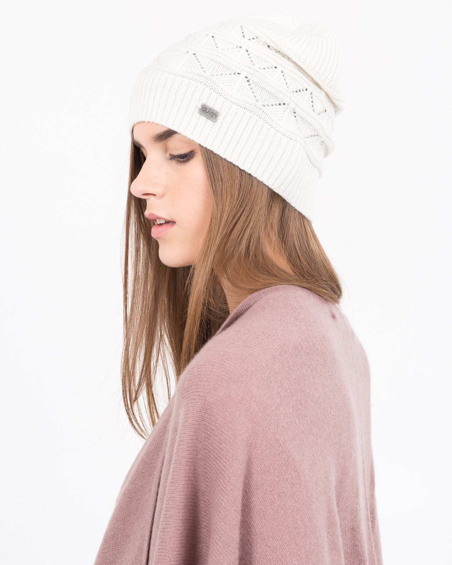 Chevron shape pointelle make this a hat to be noticed in--