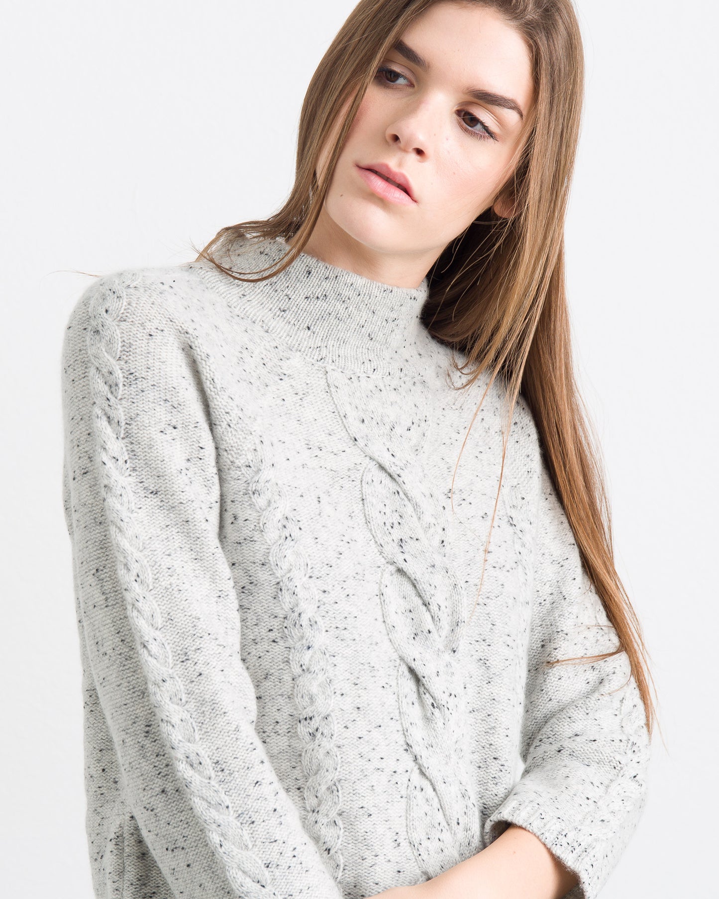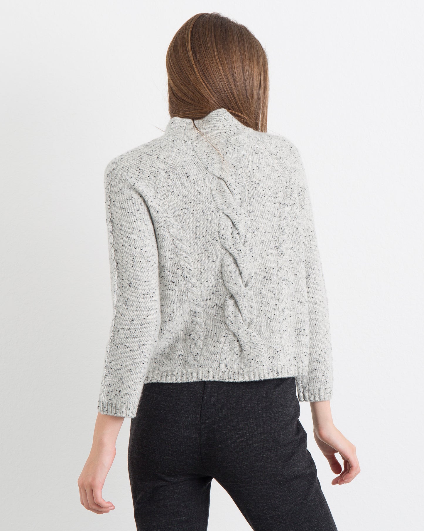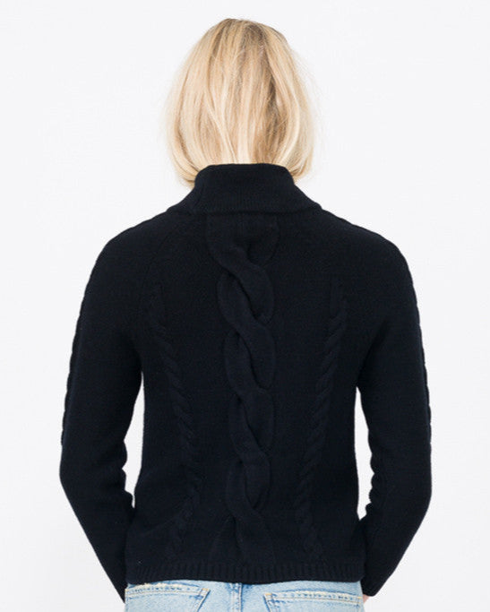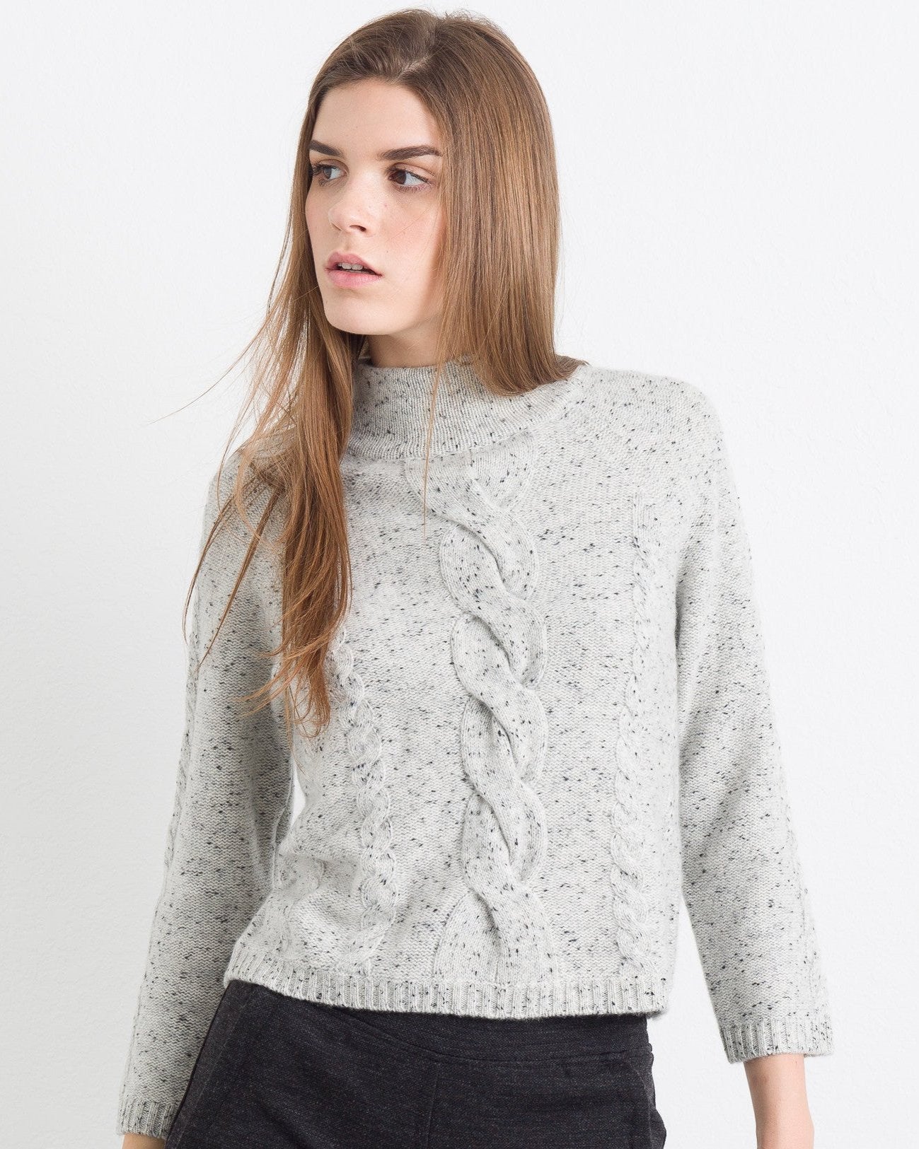 Traveling Cables! Cropped body style with shaped cables in the front and back. Easy Raglan sleeve ,engineered for great fit. WEAR IT WITH YOUR HIGH WAISTED JEANS..
