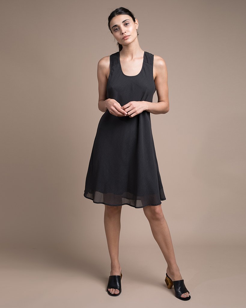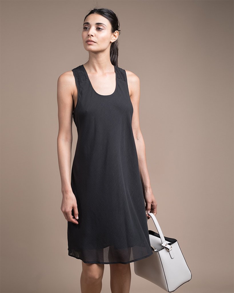 Lay back and relax in this flowy knee-length dress. Cool racrer back detail.