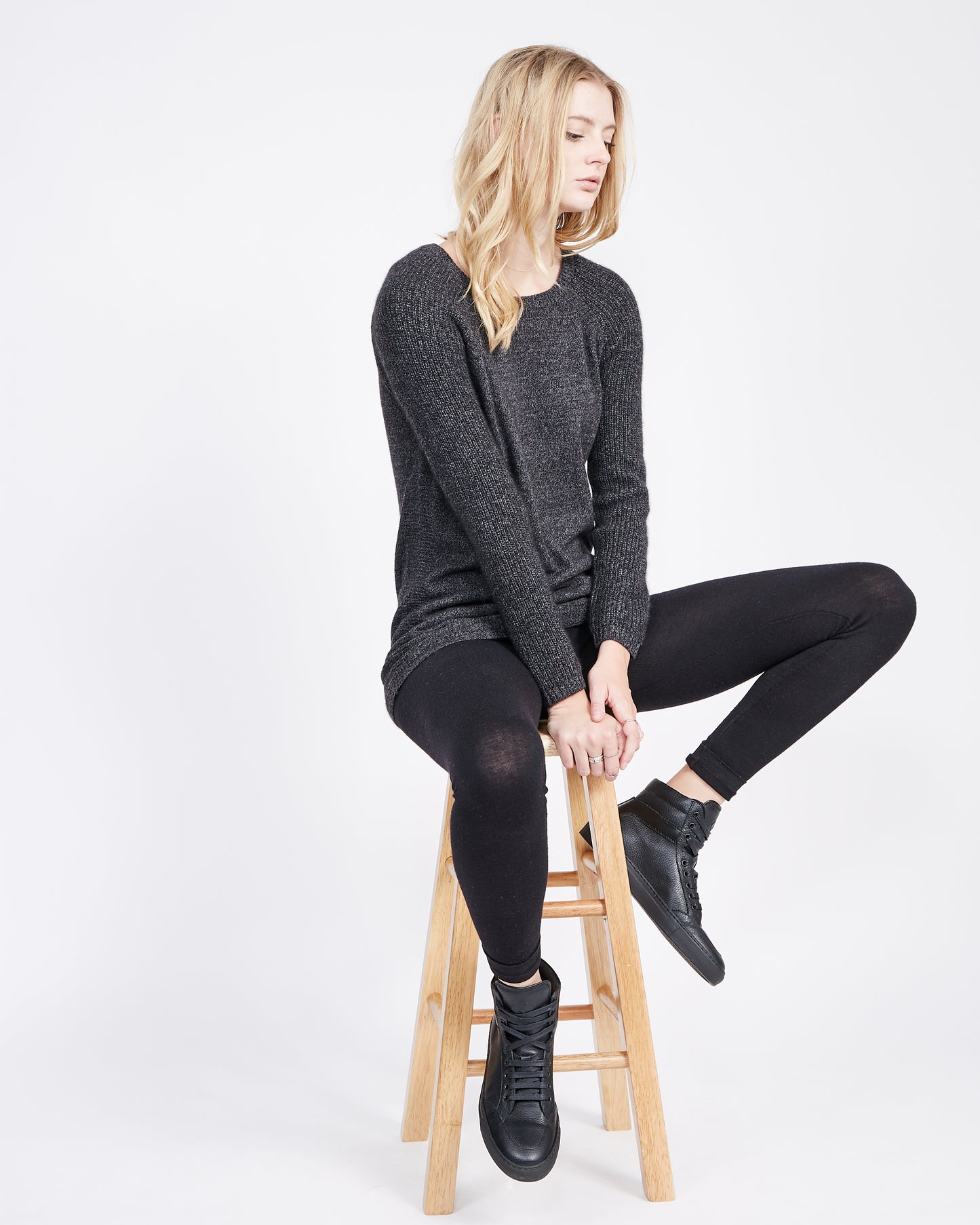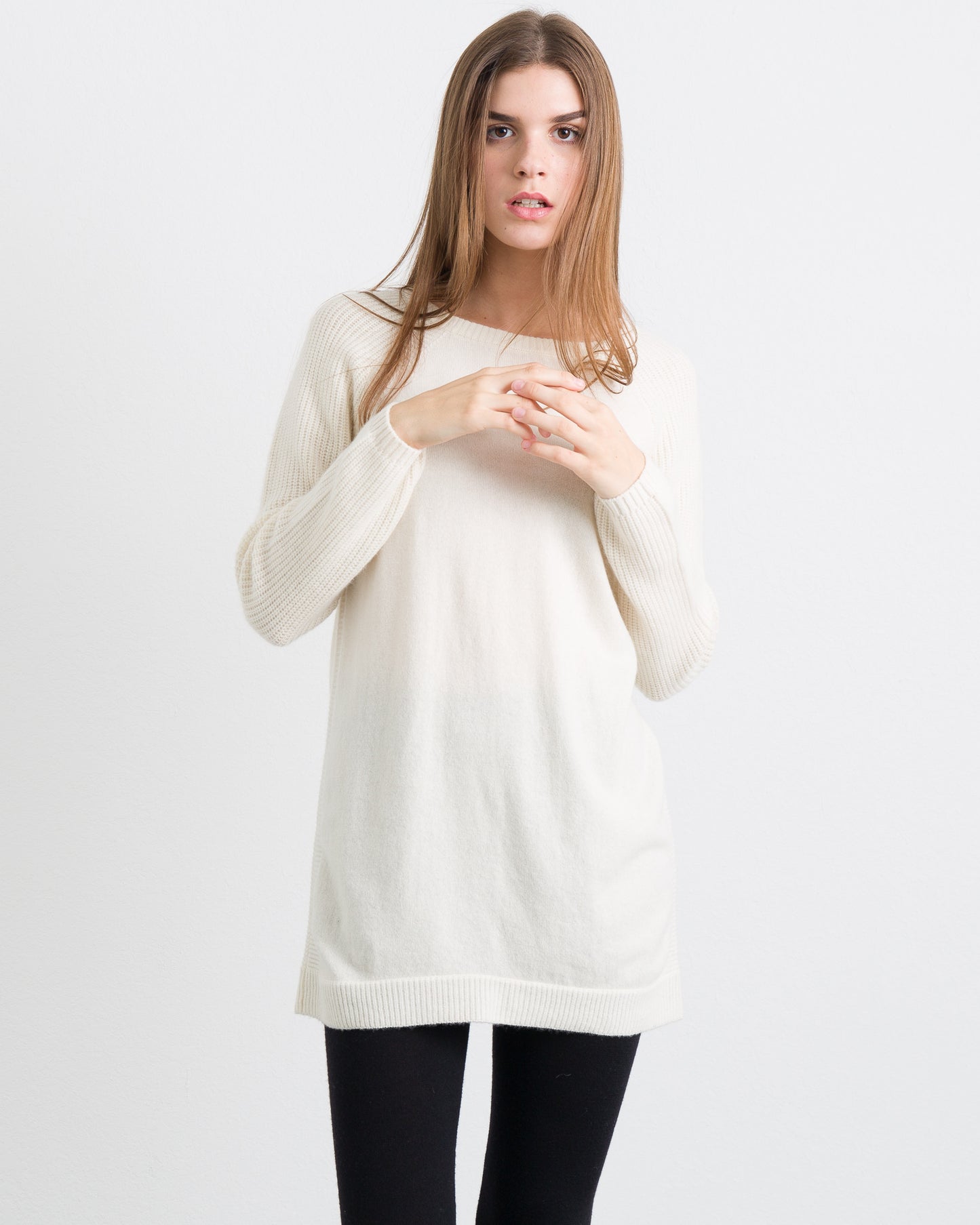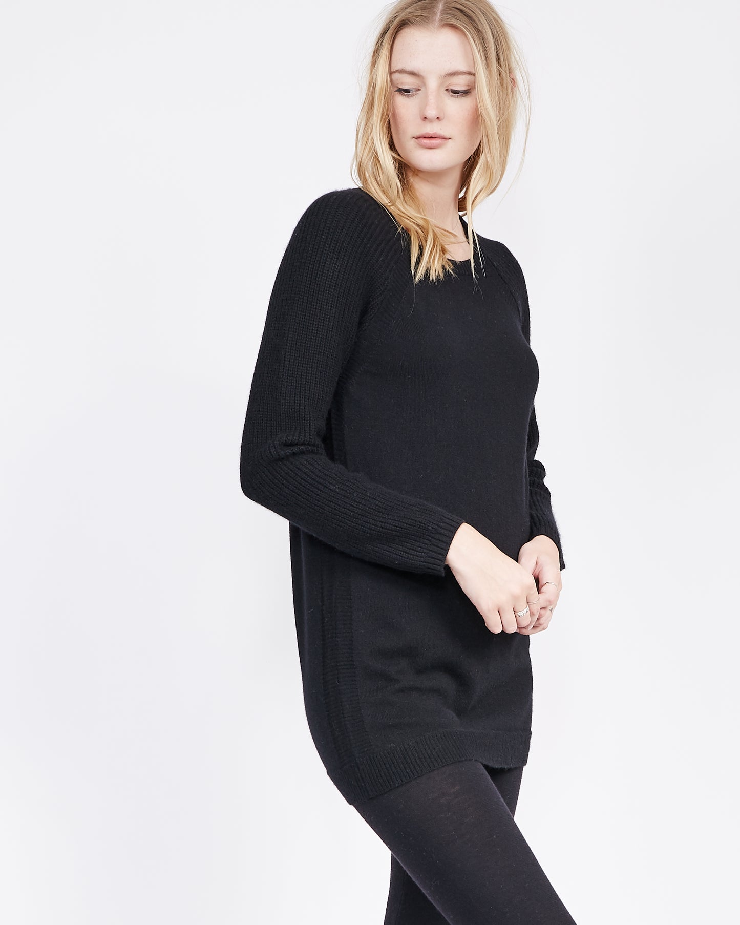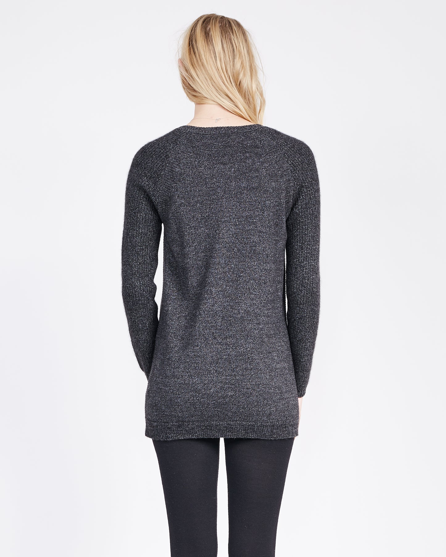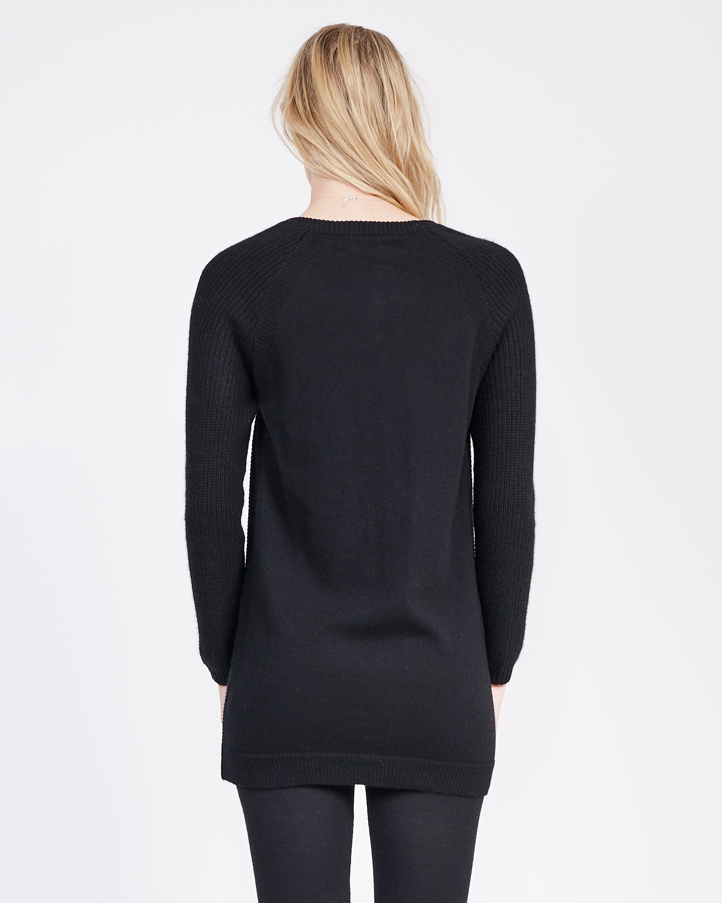 This multi-stitch, raglan sweater is the perfect partner for your favorite comfy leggings. Tunic length