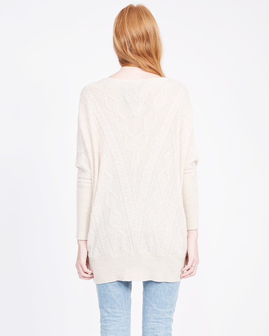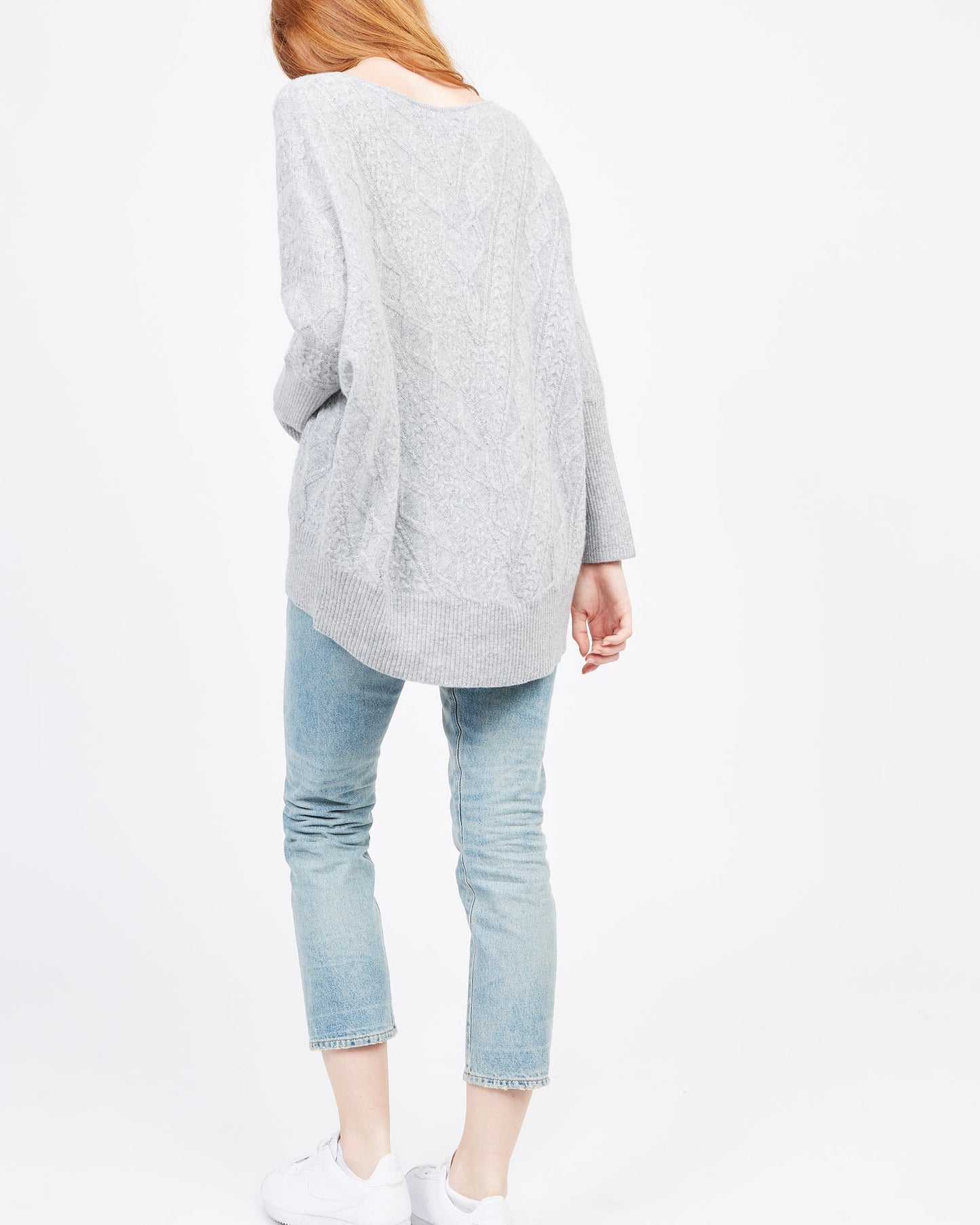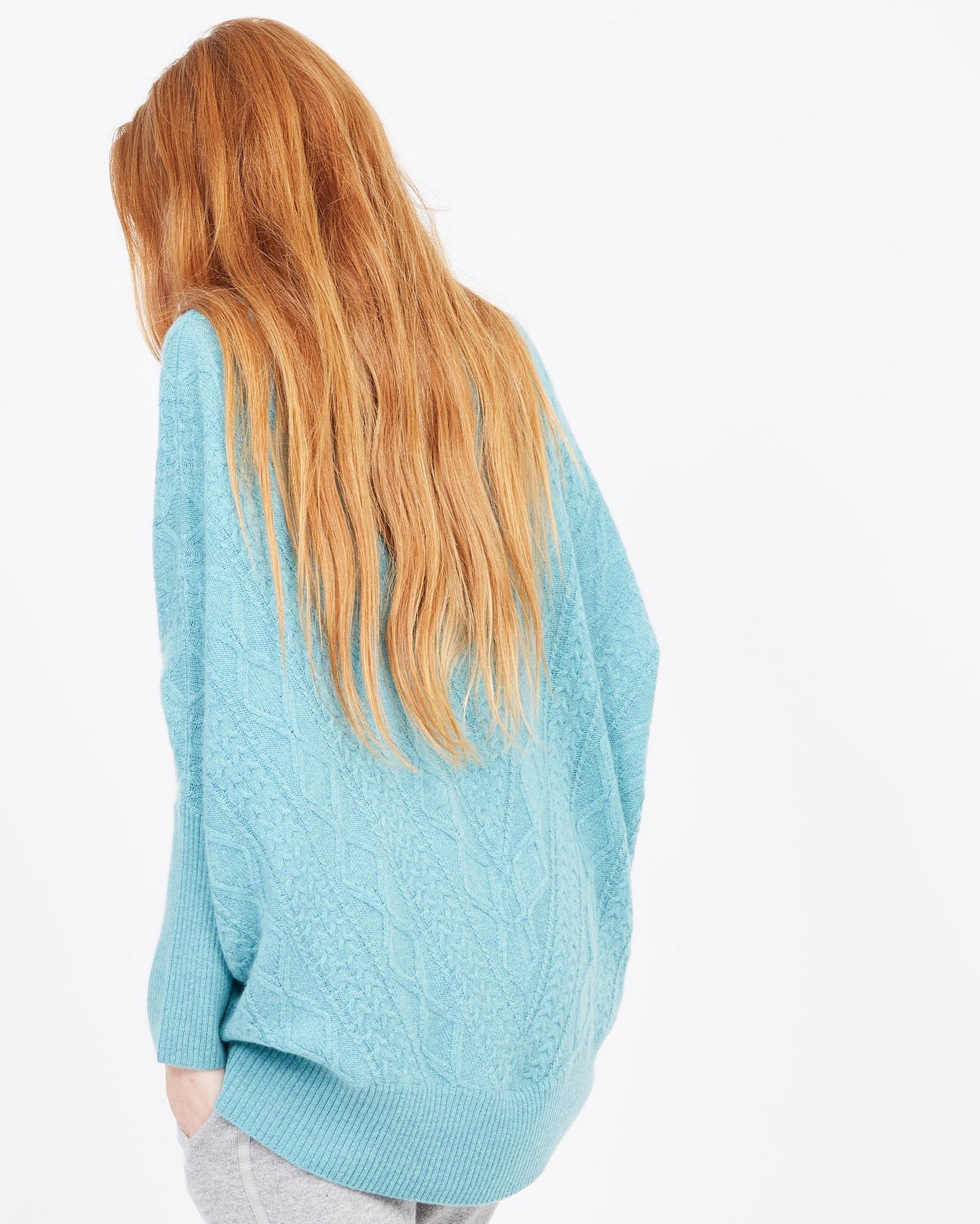 Indulge your senses in the soft cashmere fabric of this exquisite cable knit sweater. Boasting a drop shoulder and oversized design, this piece embodies effortless elegance and luxury, melding contemporary style with a timeless silhouette. Perfect for any occasion, this cashmere Cable Oversized Sweater is a must-have piece for your wardrobe.