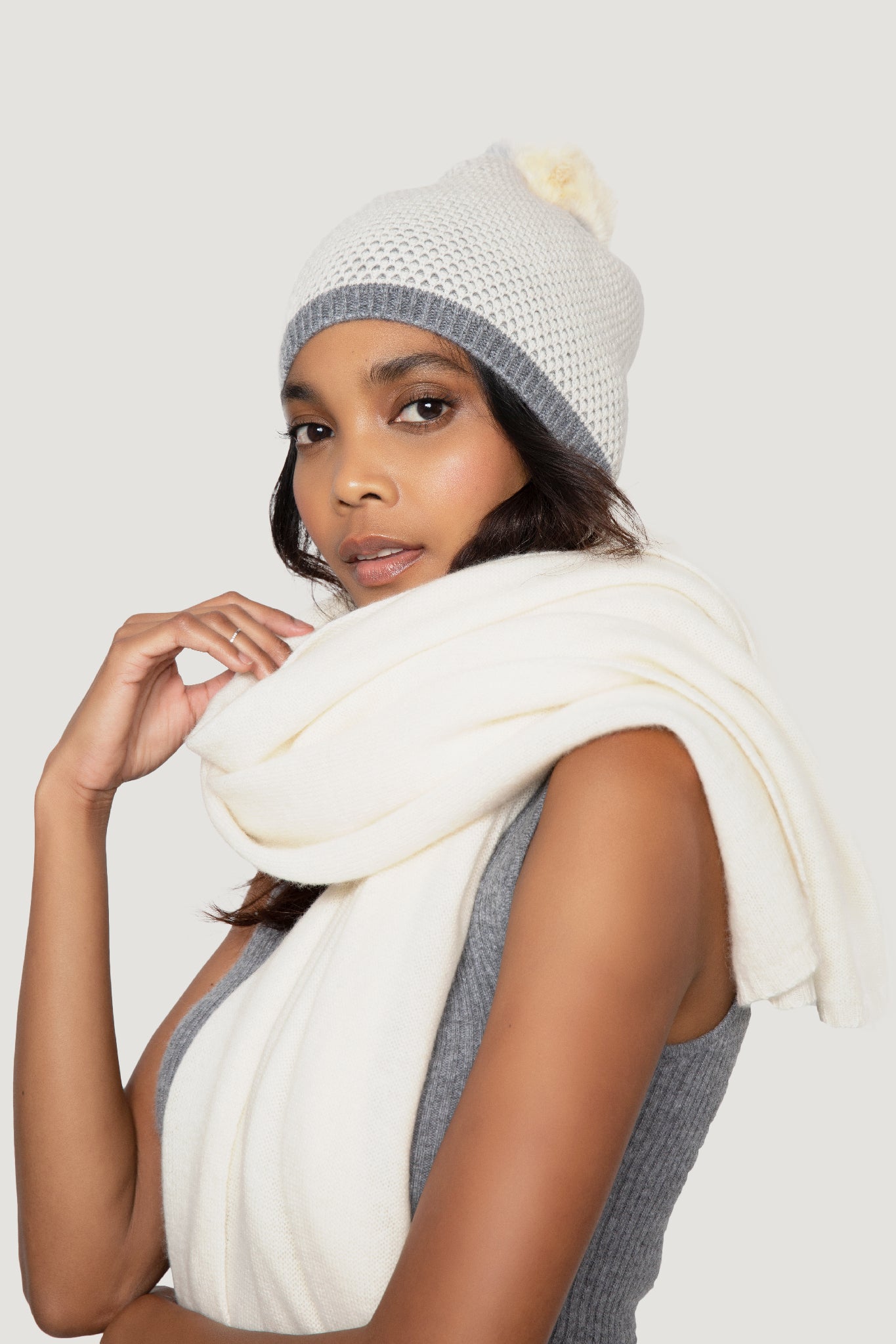 A cozy cashmere and wool blend beanie with a playful pom pom detail, our Cashmere Tuck Stitch Pom Pom Beanie is sure to keep you warm and stylish. With a ribbed texture and adjustable folded cuff you can wear it exactly how you like it.