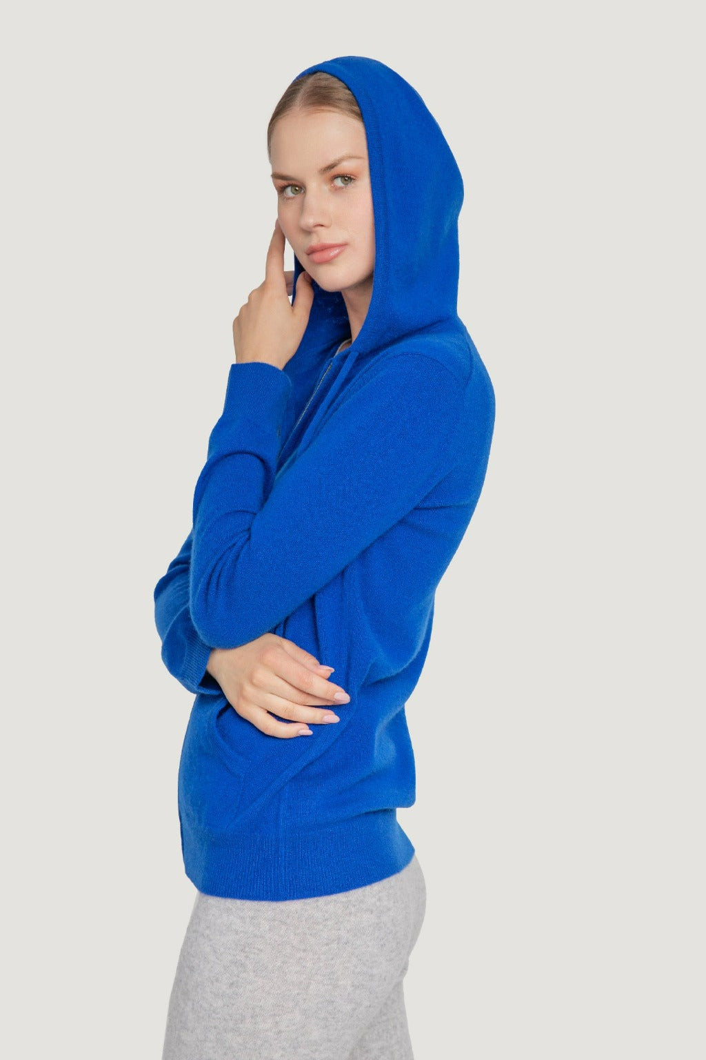 Our zip-up hoody is made with 100% Grade A cashmere celebrated for its unparalleled softness and warmth. Now available in the best fashion colors.