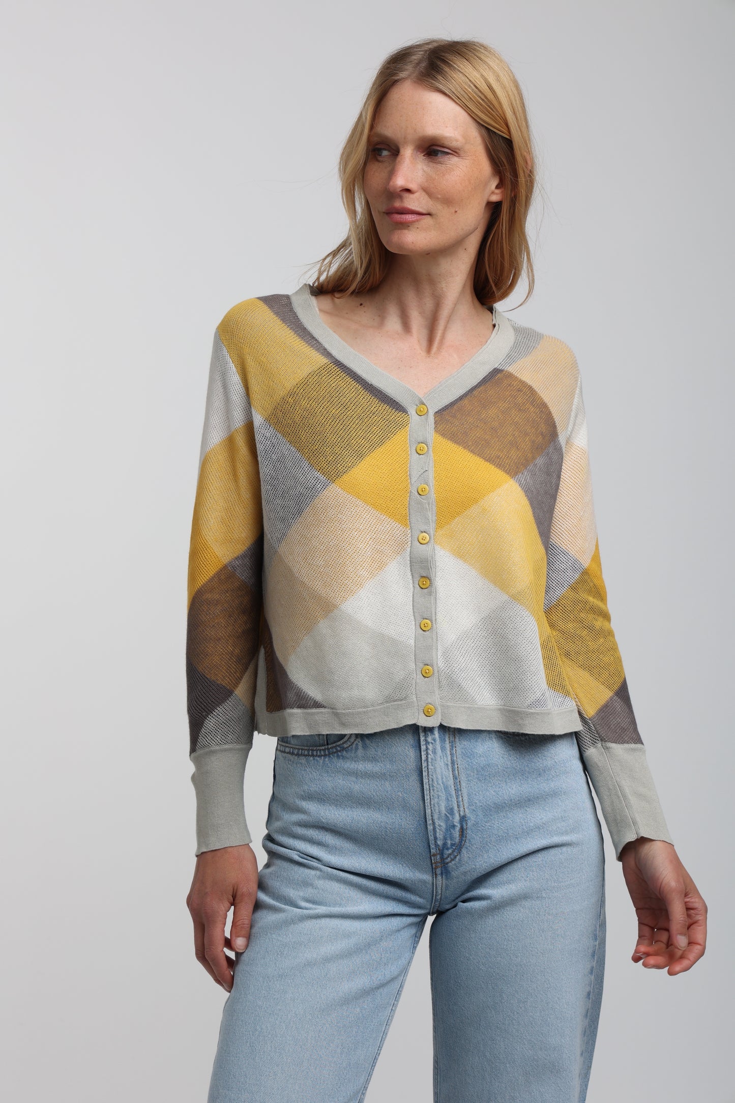 This luxurious Daria Cardigan is made of the finest cashmere cotton blend, perfect for keeping you warm and cozy. It features an exquisite plaid design, ribbed sleeve and trim detail, and an elegant cardigan silhouette. Feel the luxury of this timeless piece as you relax in style.