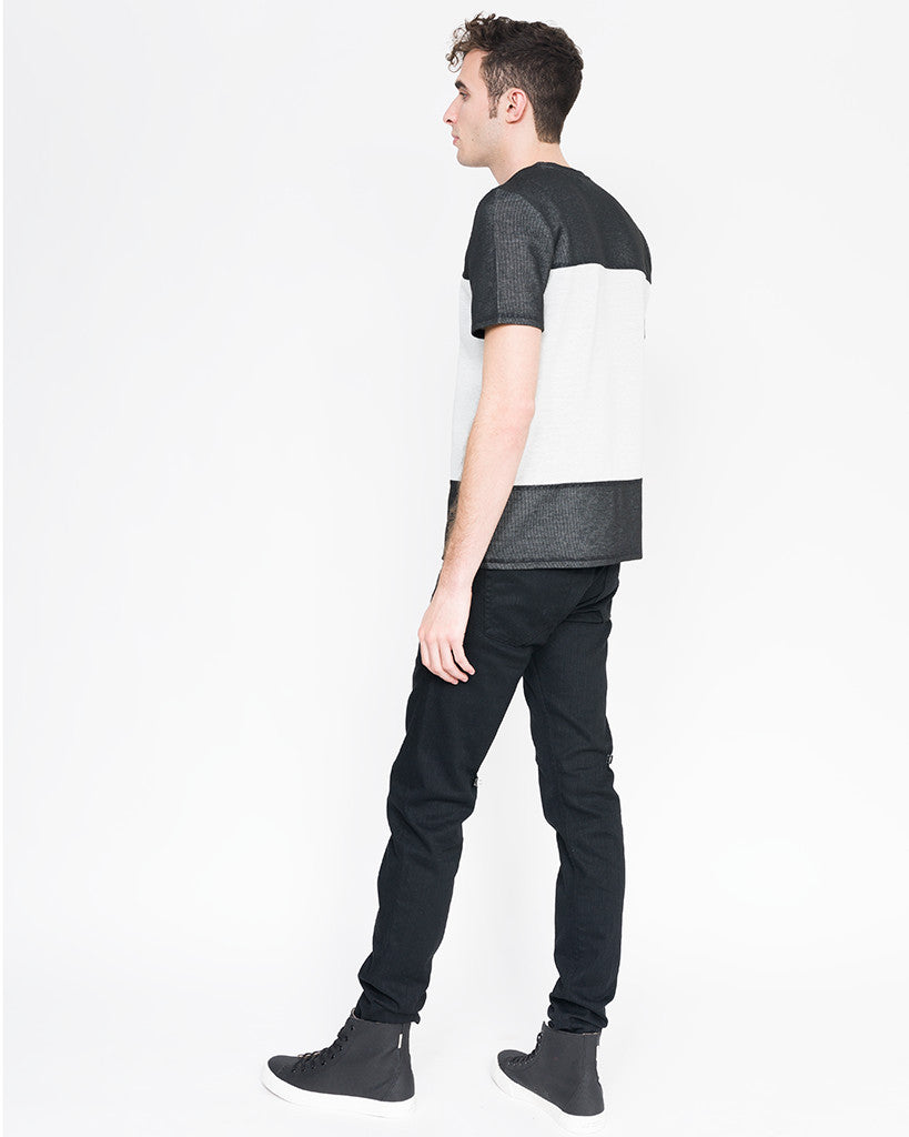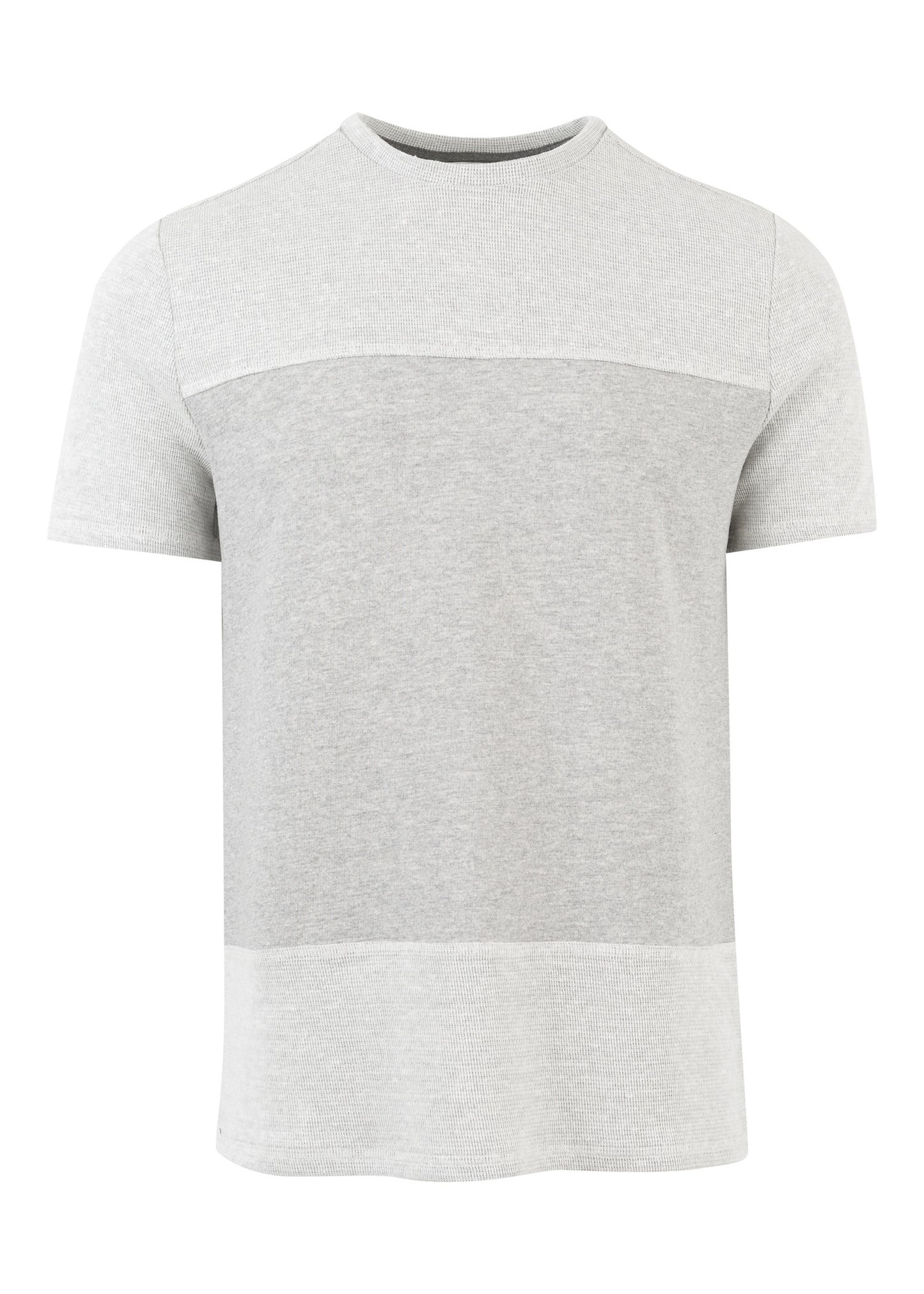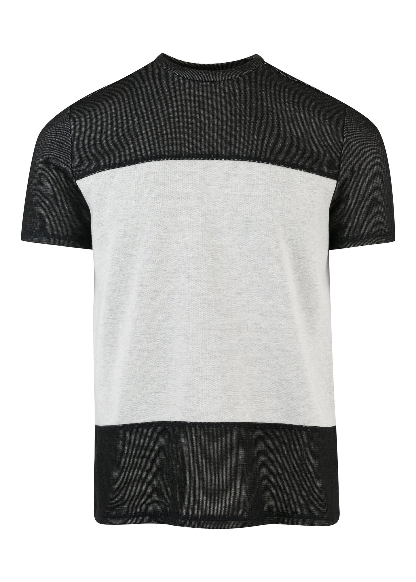 A classic crew neck t-shirt with mixed fabrics including double faced jersey.