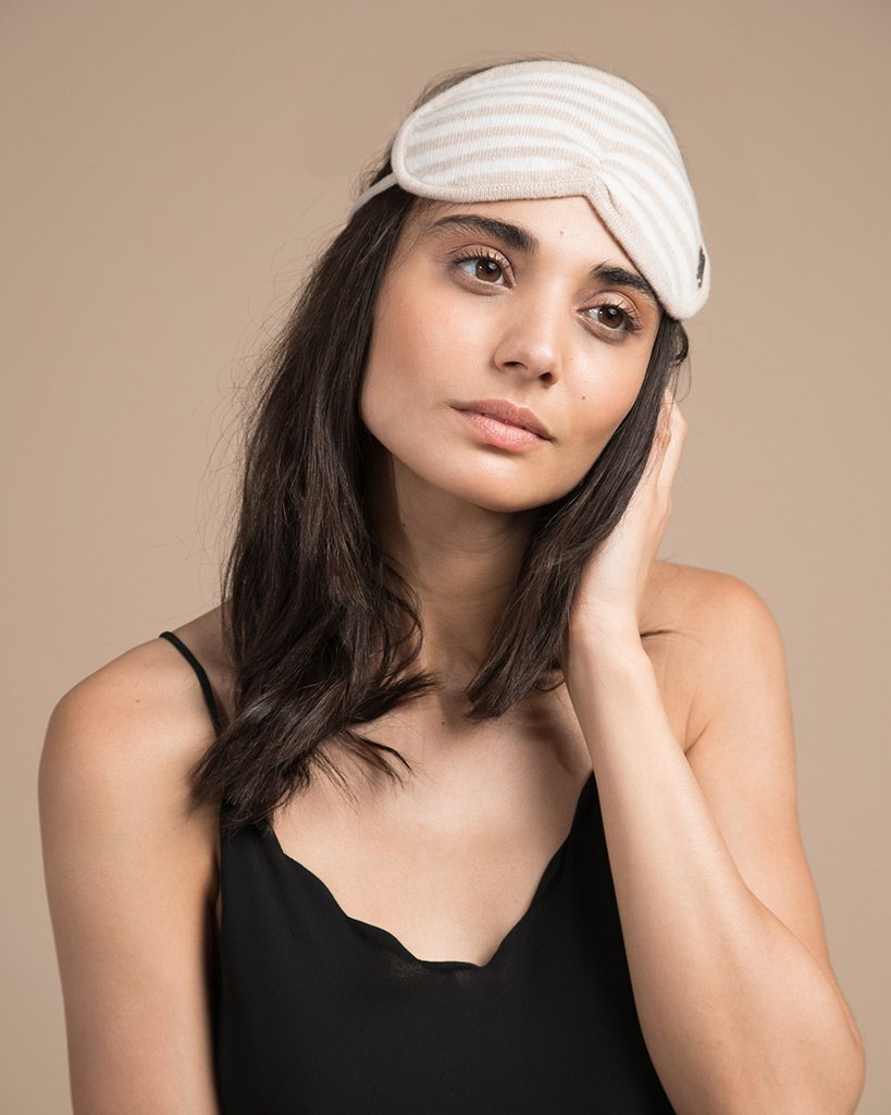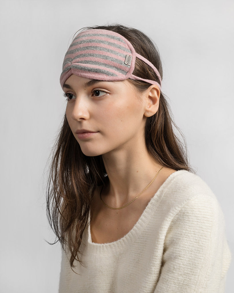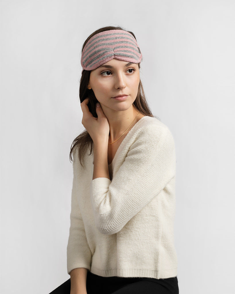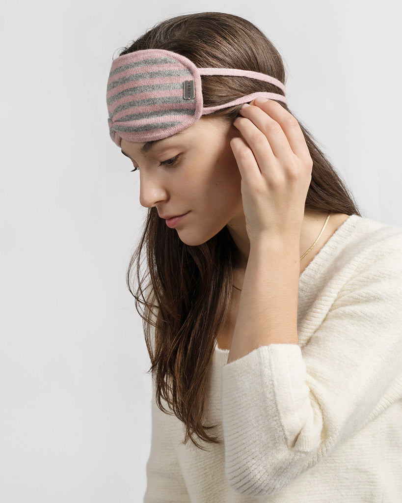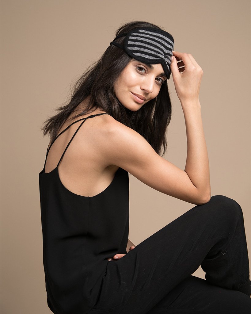 You'll never lose sleep while wearing the Lights Out Cashmere Eyemask. This striped eye mask is perfect at home or traveling in style on the plane.