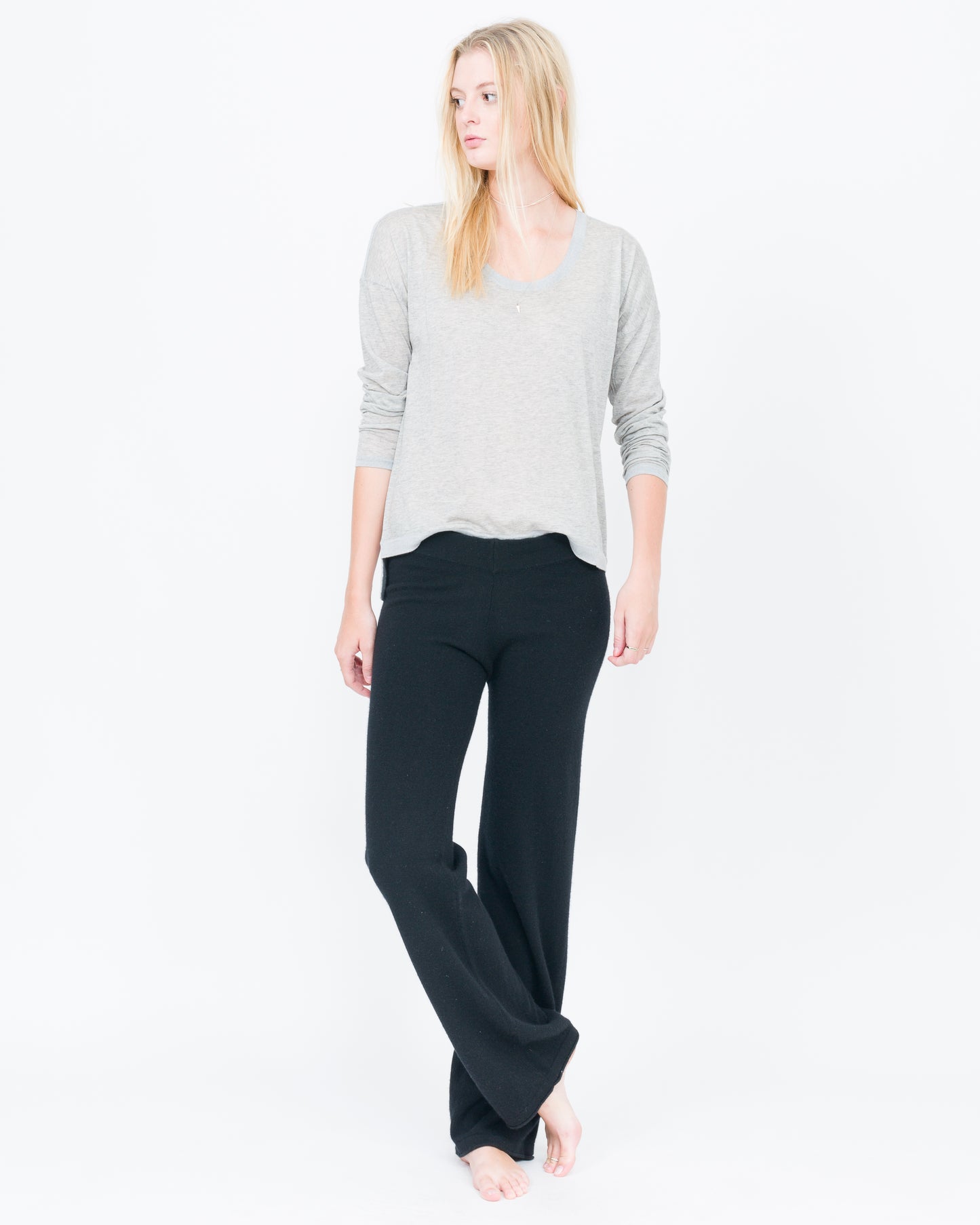 Get cozy with these cashmere lounge pants. Flared leg and relaxed fit. Higher waistband for Yoga fit!