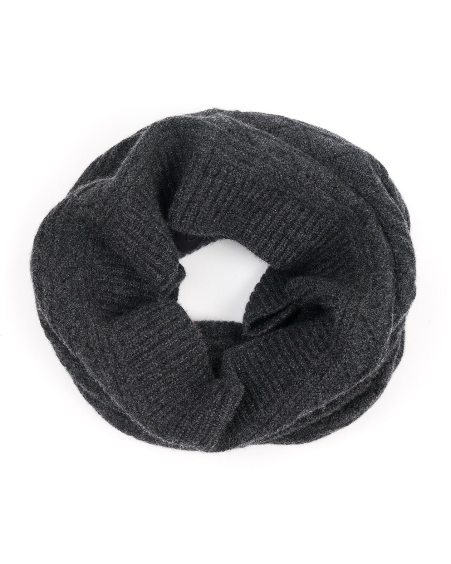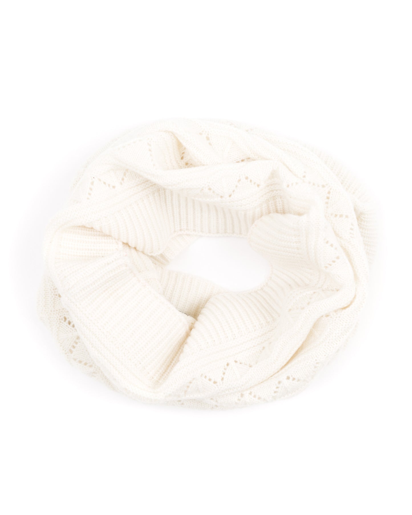 Delicate pointelle stitch circles this very feminine infinity scarf. A neck warmer with style!