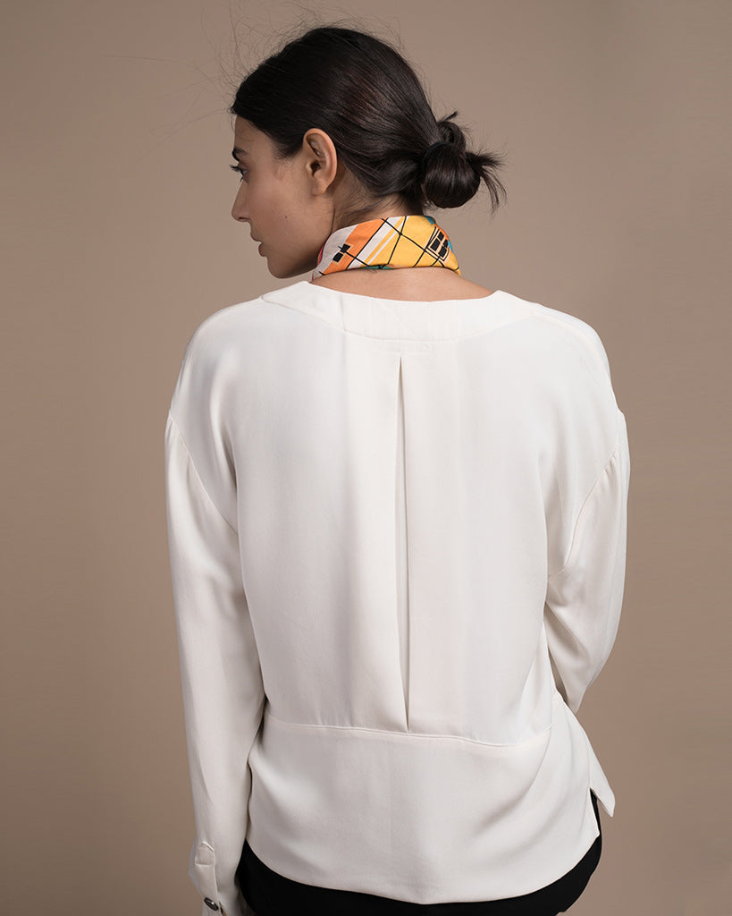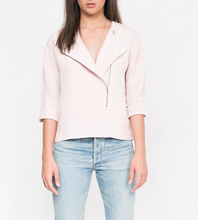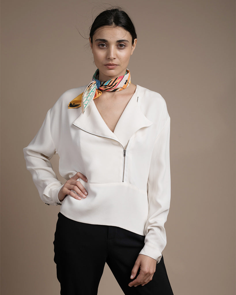 This silk zip pull over can be dressed up or down. Pair with your favorite skinny jeans, or wear it over a mini dress for a layered look. Classic and stylish.