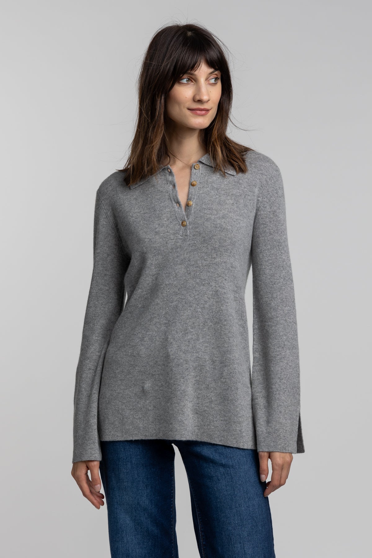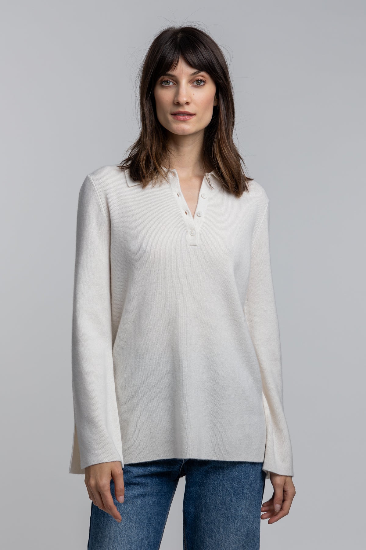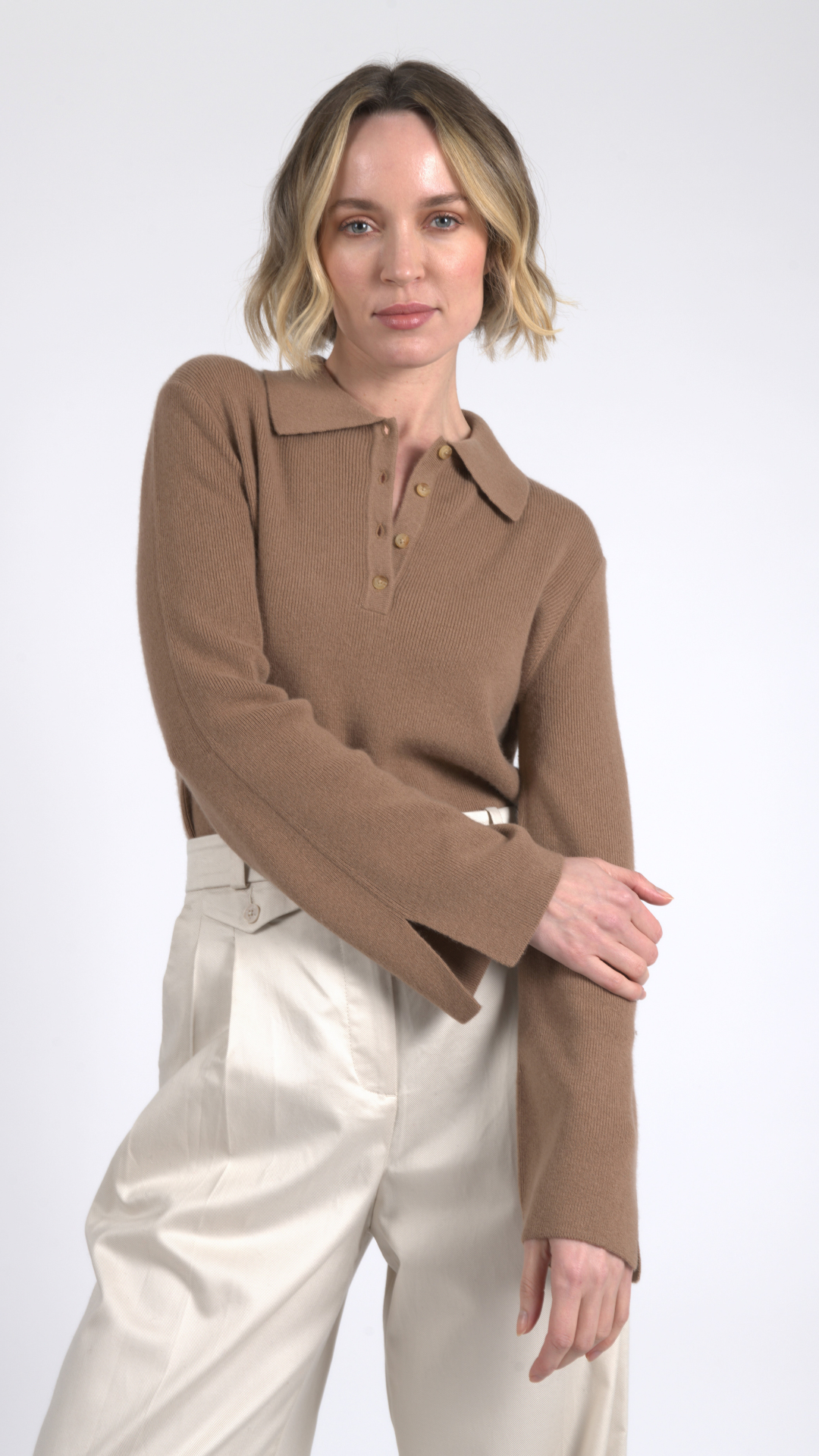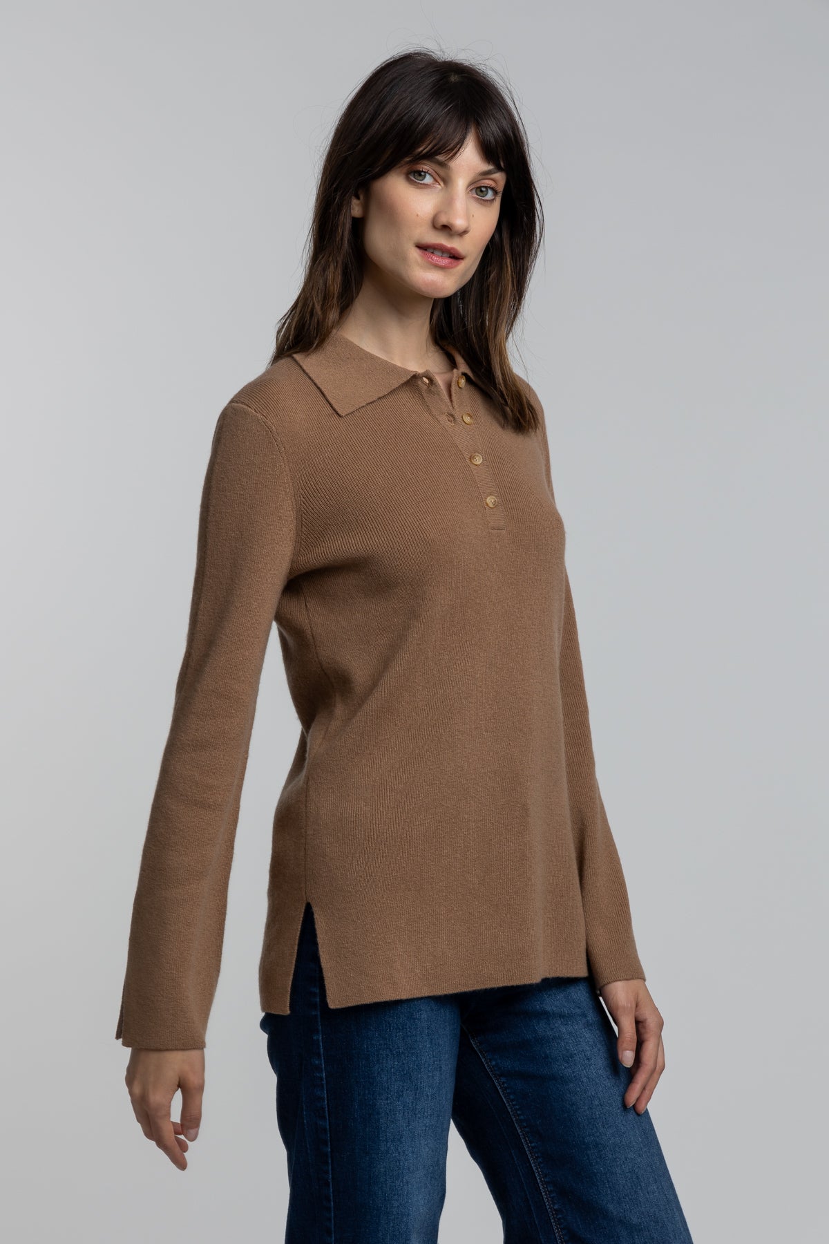 Boasting a collared-neckline, this ribbed Sweater offers a relaxed fit silhouette that gracefully cascades away from the body. This top will easily become one of your go-to sweaters that you can wear for a causal day out or dress up for an elevated look.