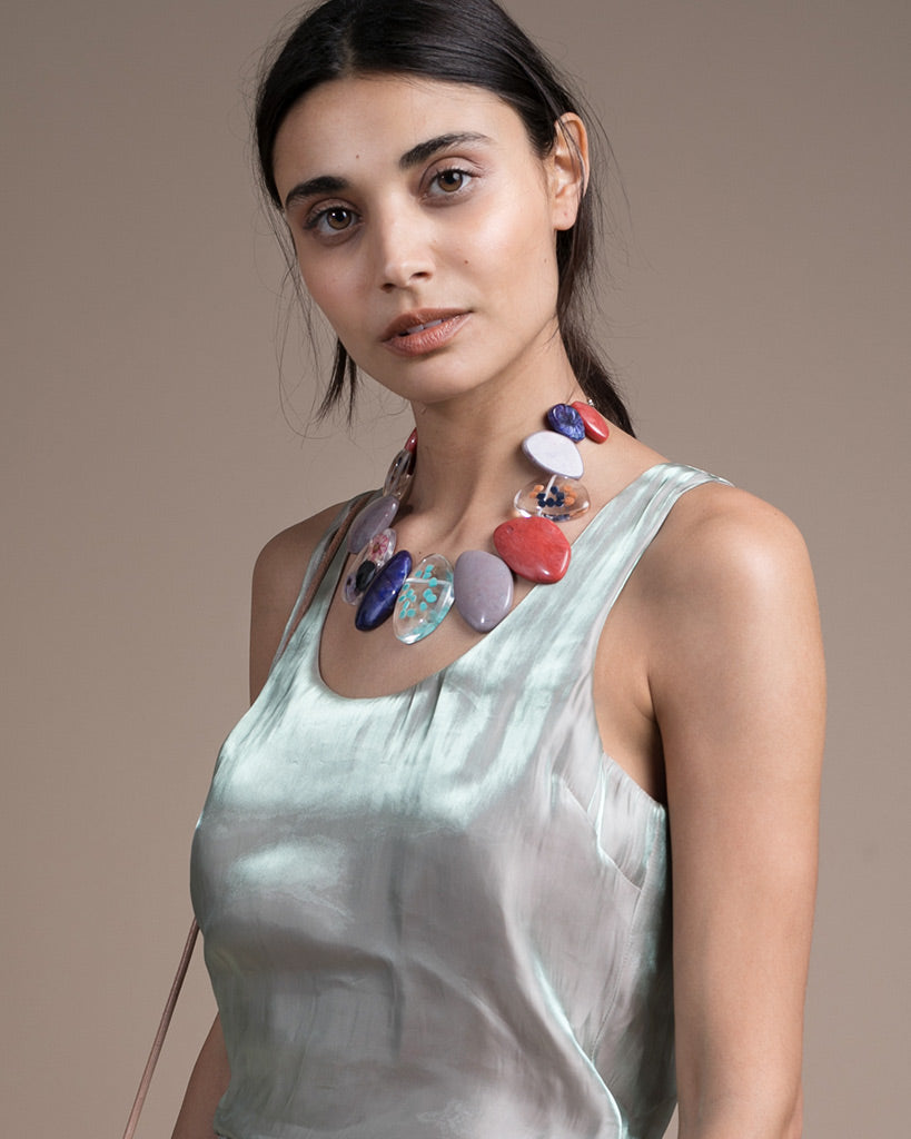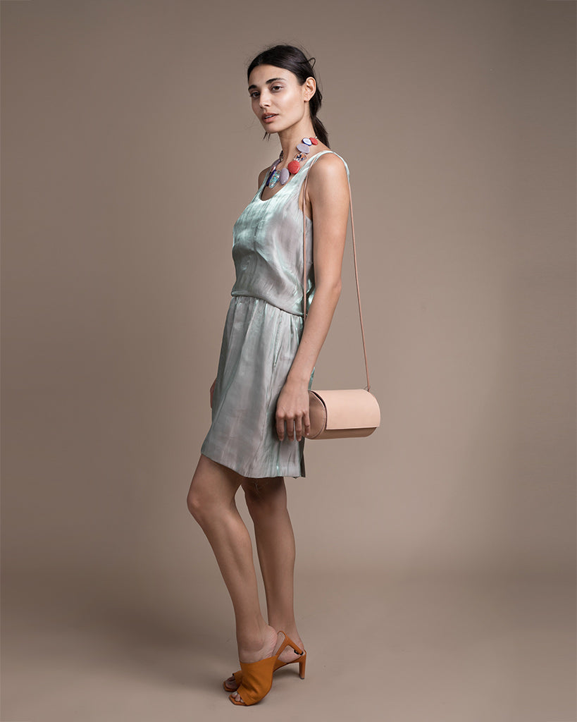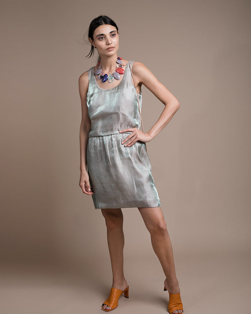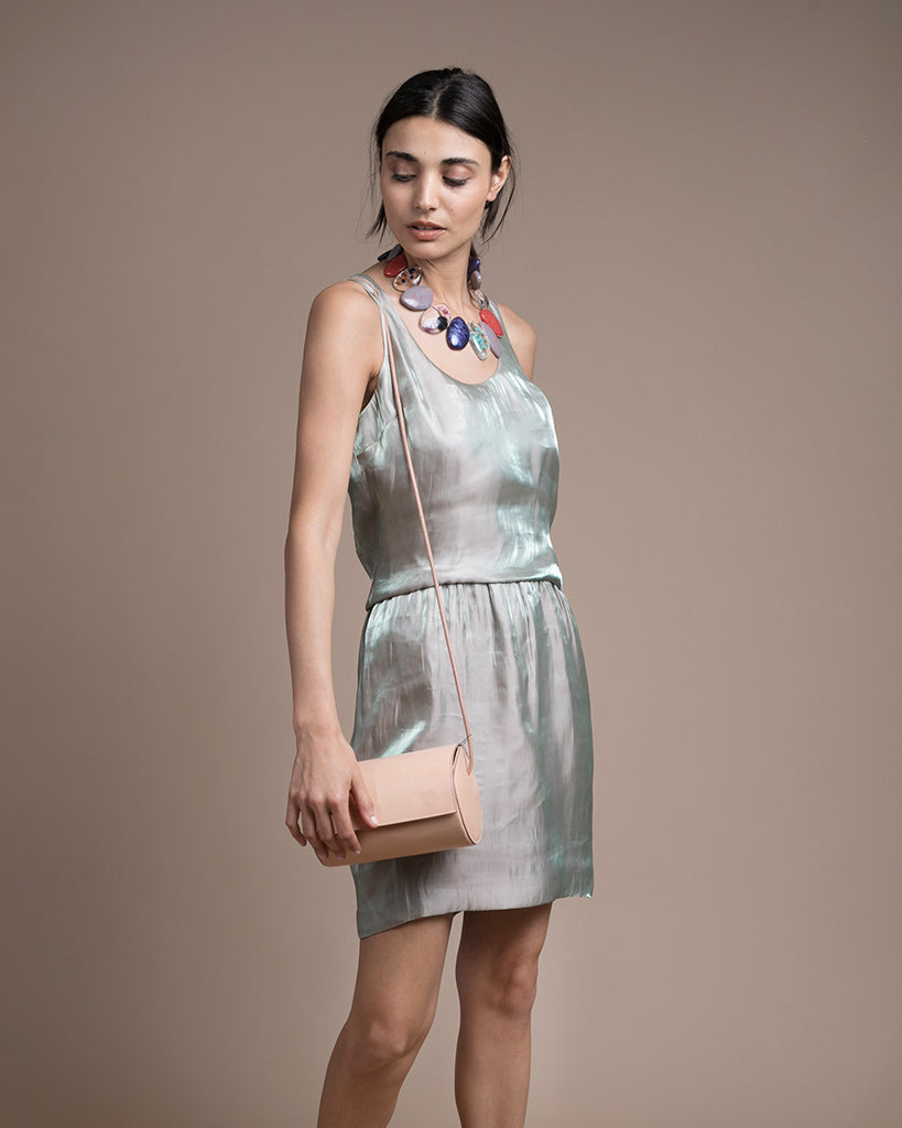 Iridescent, pearl toned mini dress. Hues of pink and sea green. Perfect for the special ocassion.