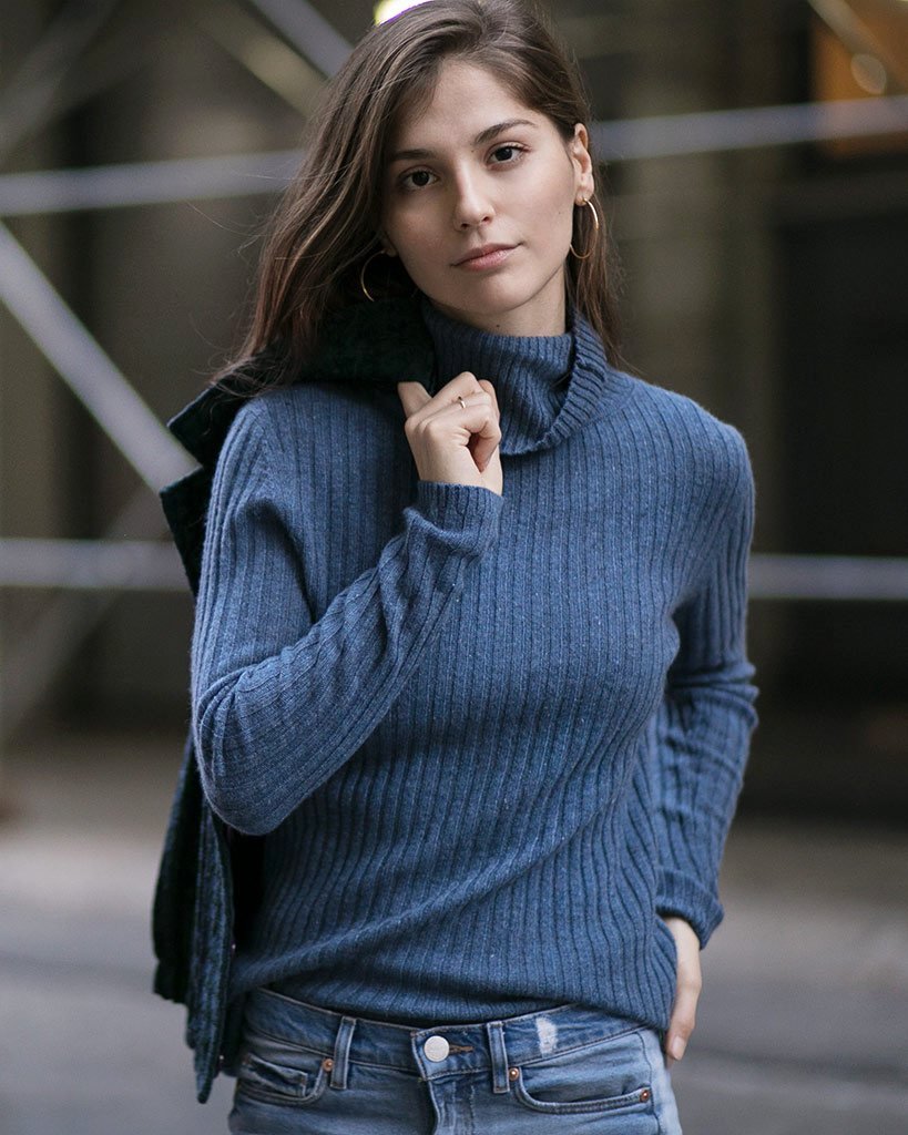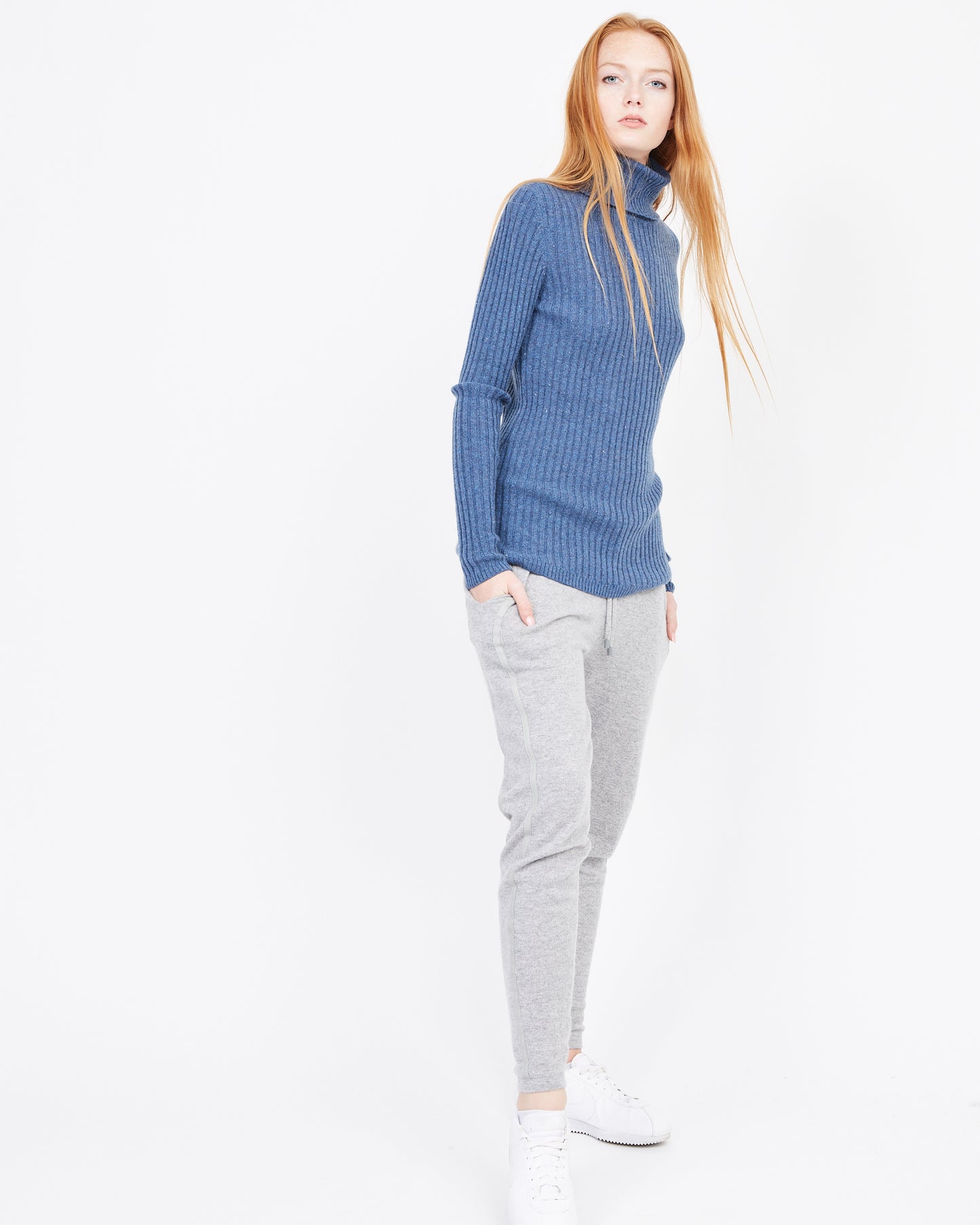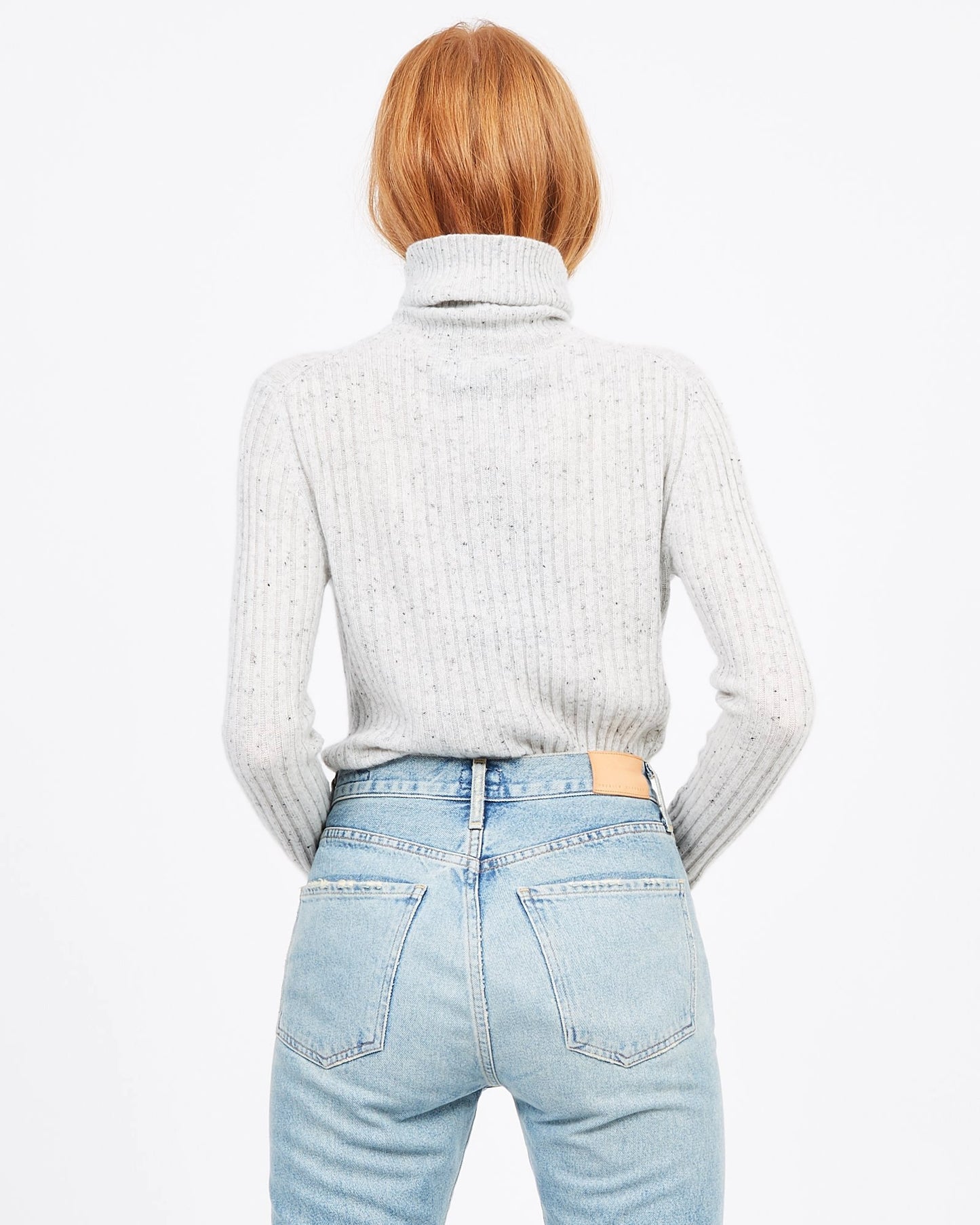 This ribbed turtle neck is the perfect layering piece for any outfit. The donegal flecks throughout the yarn gives it a tweed-like look and the ribs are so 70's..