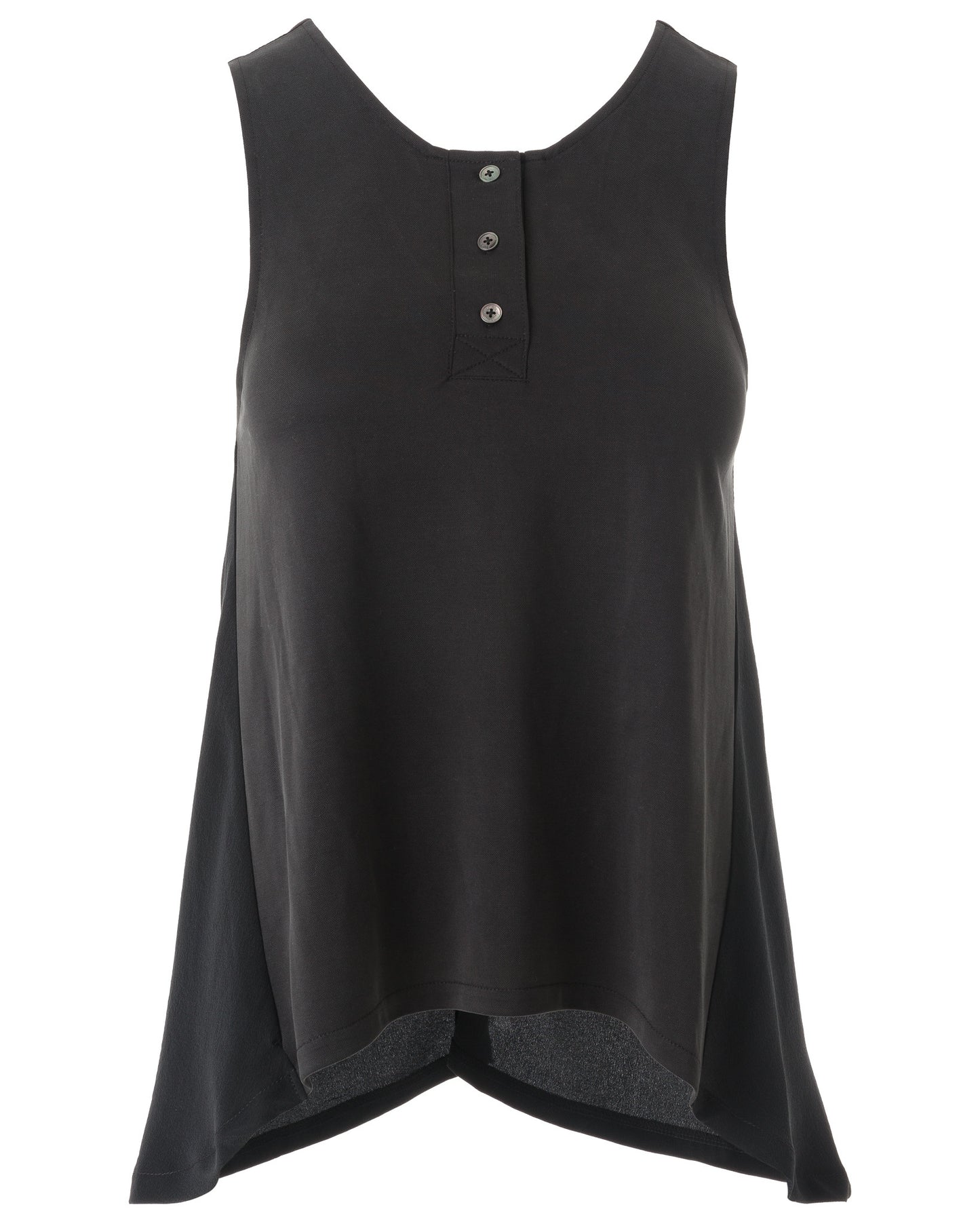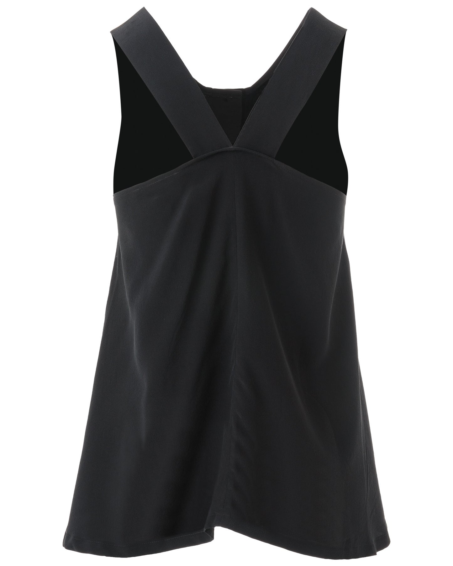 SLEEVELESS BUTTON UP SHORT TUNIC WITH RACERBACK DETAIL. Easy and comfortable shape.. Flared bottom for a flattering fit