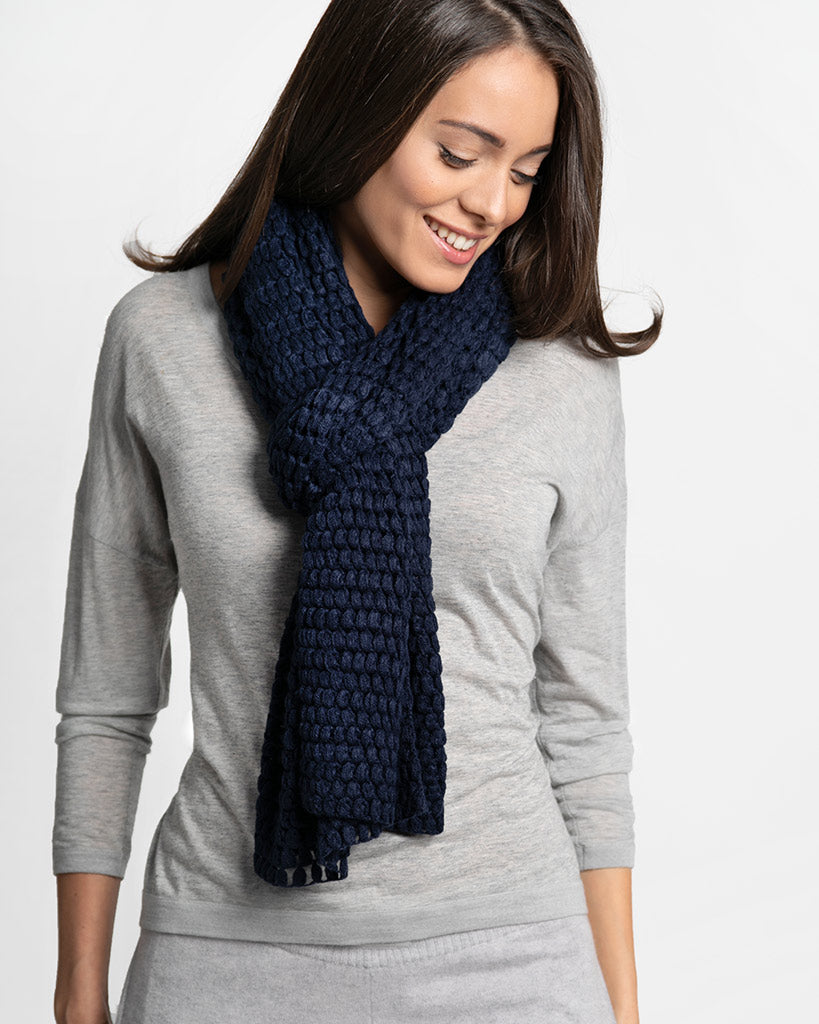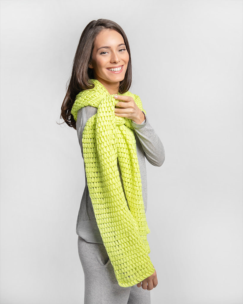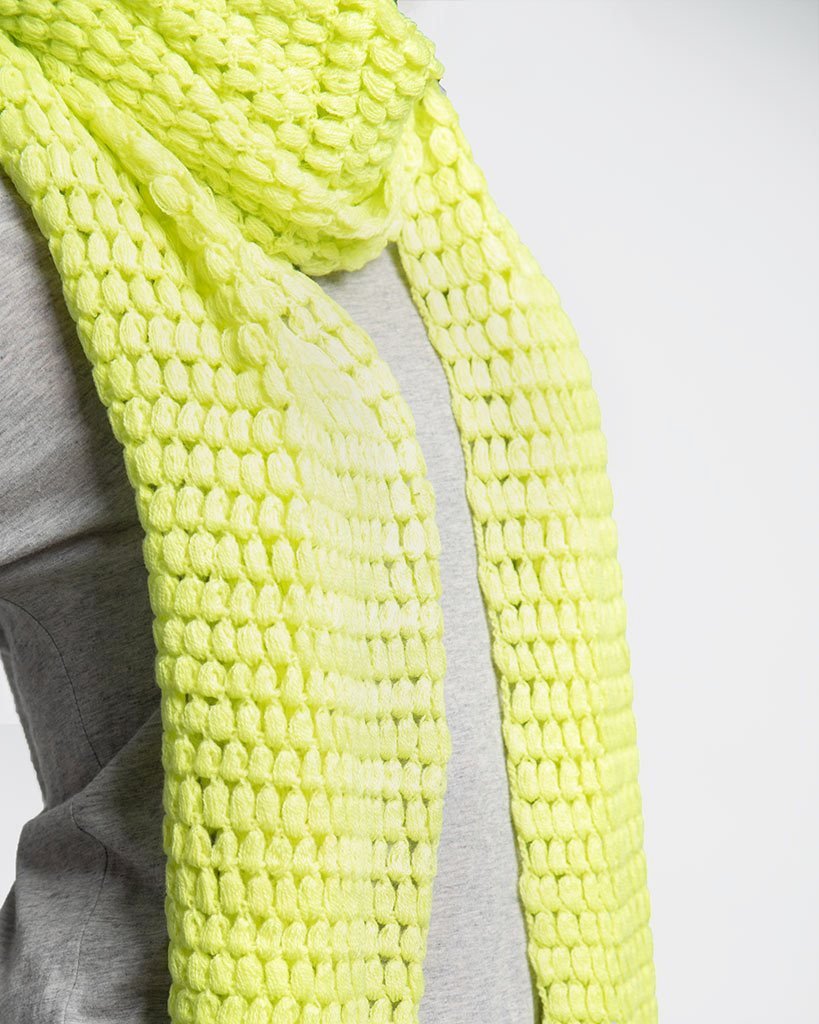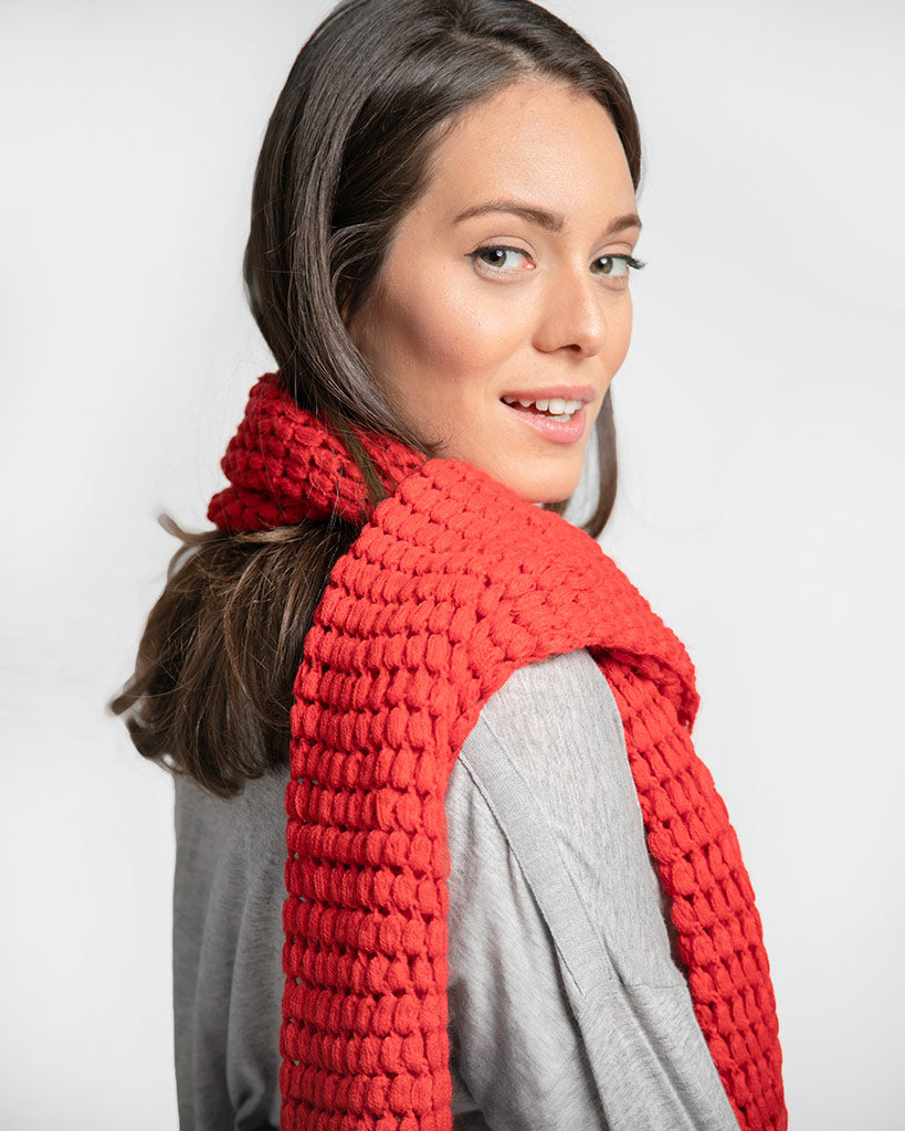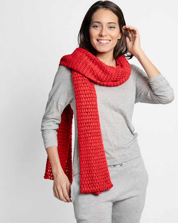 Cuddle up with our versatile hand crocheted Extra Large scarf. It can also double as a wrap due to size. This has been re-designed in five bright colors. A multi- season accessory! Just enough to escape the chill!