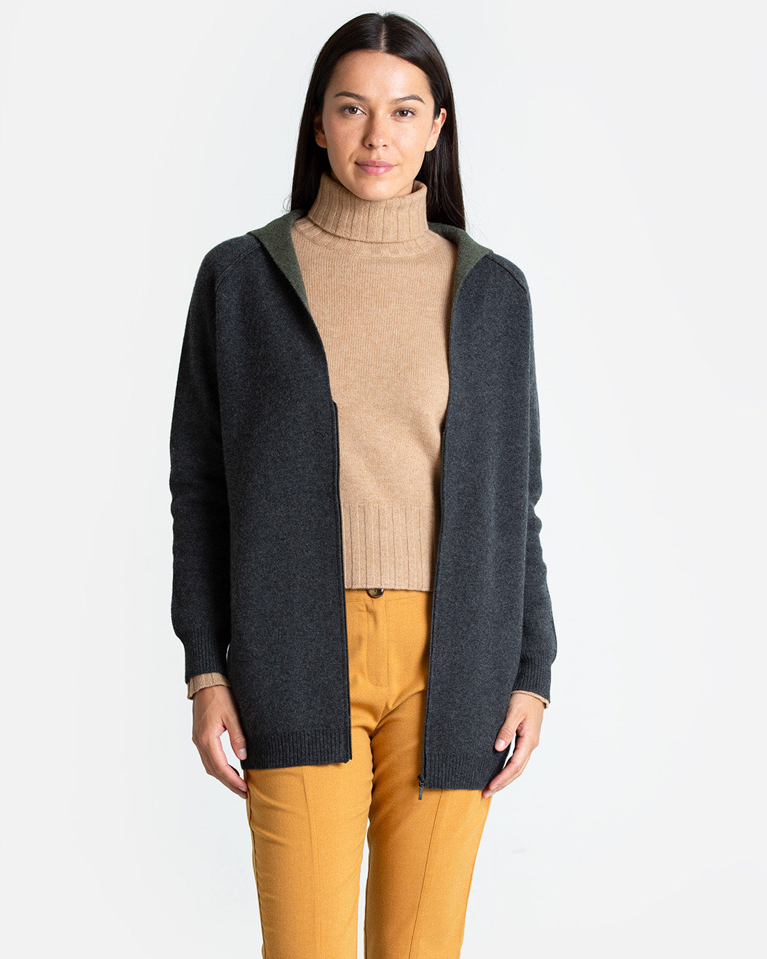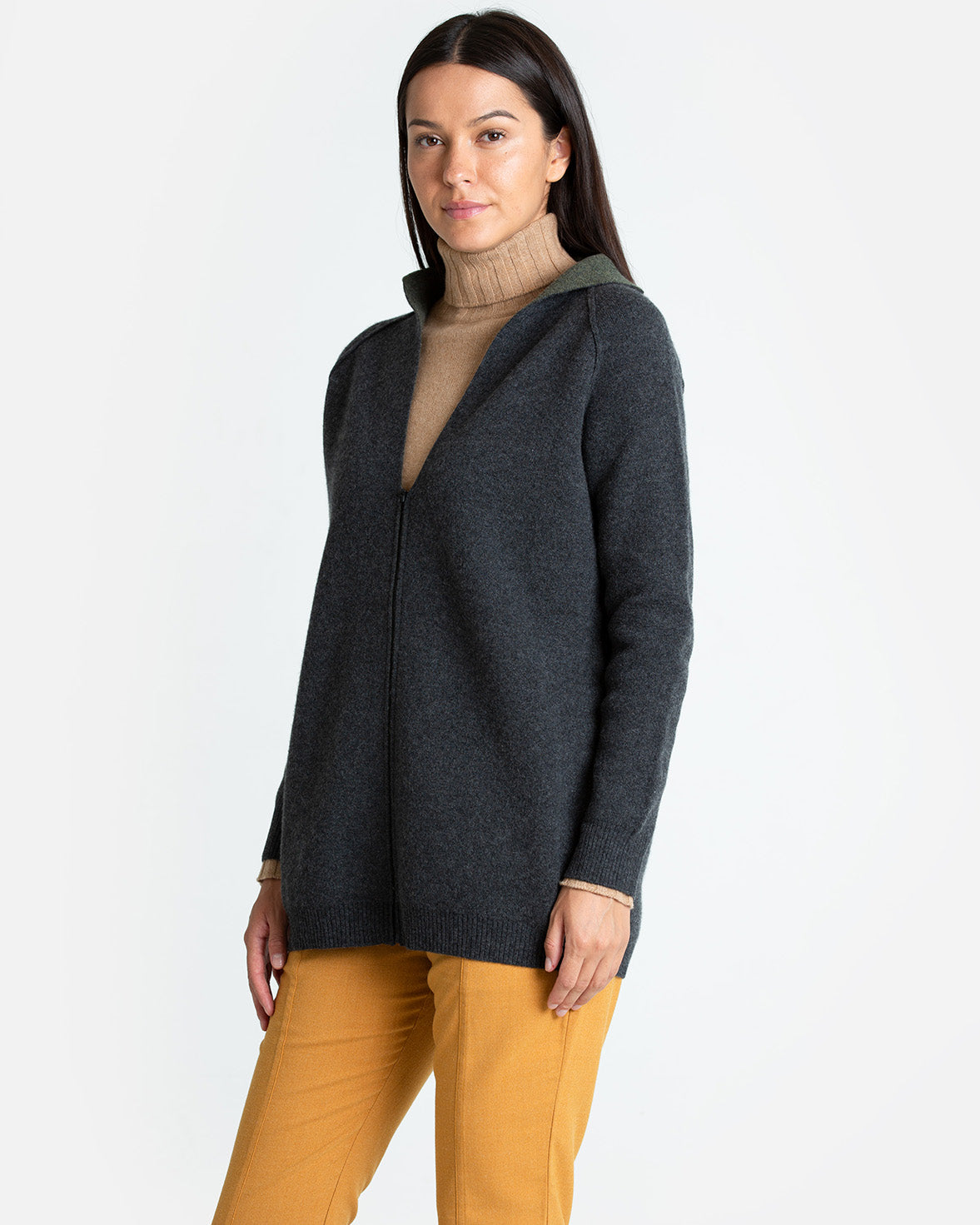 This double faced ( 2X the cashmere) cashmere zip-up COATIGAN with a raglan sleeve is a perfect mix of sporty and chic.